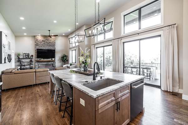 At its heart are two full-sized kitchens, each a culinary masterpiece adorned with rich leathered granite countertops and ample room for gathering. Whether you're hosting a holiday feast or a quiet evening with loved ones, these kitchens are built to impress. Sunrise and sunset paint the sky in breathtaking hues, best enjoyed from the wide-open grounds or through the expansive windows that frame nature's daily show. The property is an entertainer's dream--perfect for hosting under the stars, celebrating milestones, or simply savoring the peace of country living. Ideal for multi-generational living, the thoughtful layout provides both shared and private spaces, making it easy to live together while maintaining independence. This is more than a home--it's a sanctuary, a stage for unforgettable moments, and a place where life unfolds beautifully.