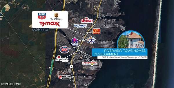 Introducing the Riverview Luxury Townhomes, a prestigious development opportunity in Lacey Township, NJ. 2 Lots. This exclusive property features nine luxury units with stunning river views, each boasting 4 bedrooms, 3 bathrooms, and three levels of spacious living space ranging from 1,729 SF to 3,351 SF. The unique reverse living design offers breathtaking views of the Forked River and State marina, making it a truly remarkable Jersey Shore living experience. Situated less than 2.5 miles from Garden State Parkway Exit 74, this prime location provides convenient access to a range of amenities and attractions. The property's rent roll showcases a lucrative rental income stream from existing tenants, adding to the investment appeal of this exceptional real estate opportunity.