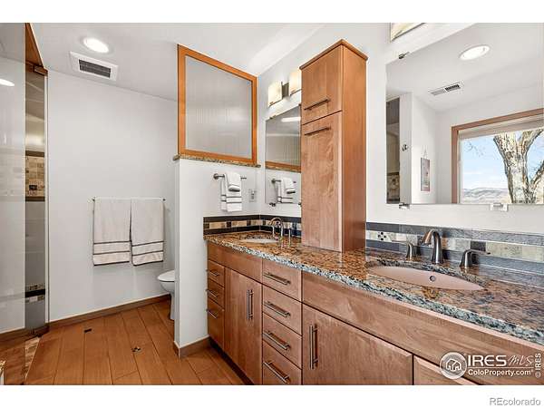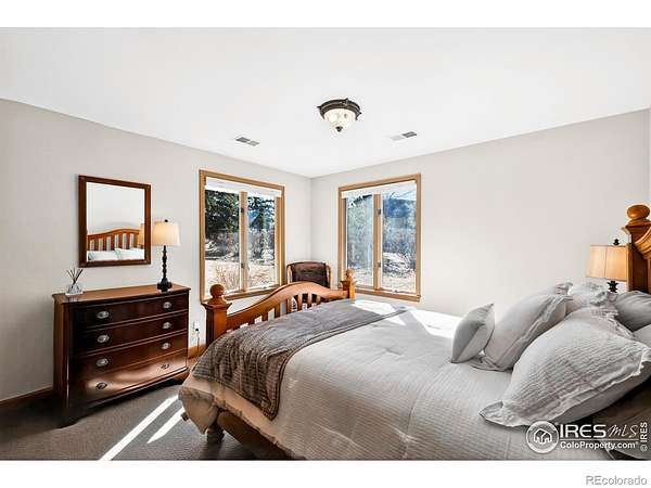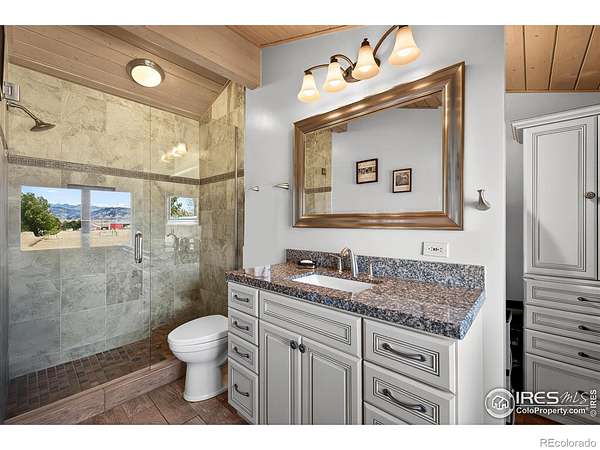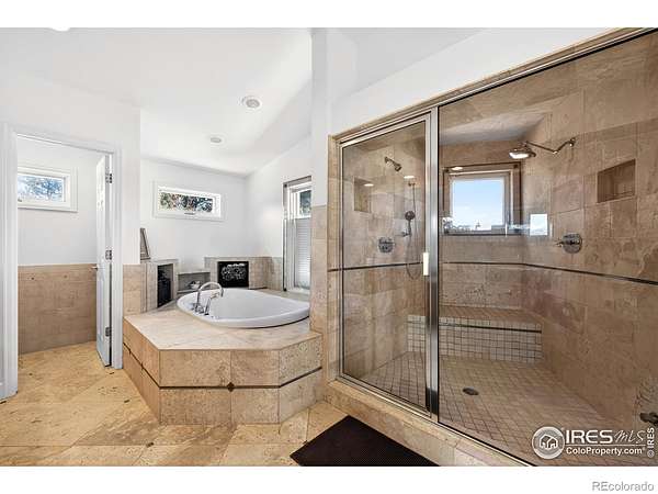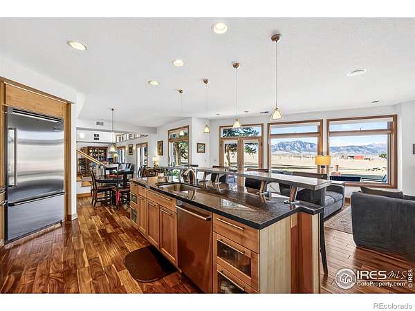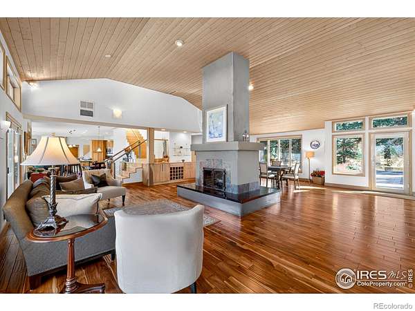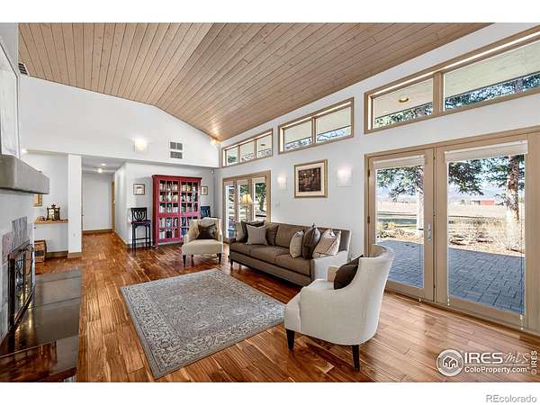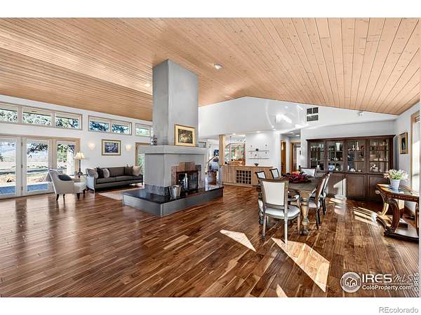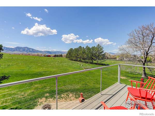 Welcome to Vista Prive, an extraordinary private retreat offering some of Boulder's most breathtaking, unobstructed views. Tucked along a picturesque country lane, this one-of-a-kind residence evokes a rare sense of seclusion and serenity, while remaining just minutes from downtown's vibrant energy. From the moment you enter, you are captivated by soaring ceilings and dramatic volumes of light in the expansive great room. A striking double-sided, wood-burning fireplace anchors the formal living and dining spaces, creating an inviting ambiance for gatherings. Radiant-heated wood floors flow effortlessly throughout, guiding you into the heart of the home. The chef's kitchen is both refined and functional, featuring premium appliances, granite countertops, and a stainless-steel breakfast bar, perfectly positioned to take in the sweeping, ever-changing landscape. Open to the family room, this space invites connection and comfort framed by panoramic views. Upstairs, the secluded primary suite is a true sanctuary, showcasing vaulted ceilings, a cozy gas fireplace, and a private patio. The spa-inspired five-piece bath offers a steam shower, jetted soaking tub, and generous walk-in closet. A second main-level primary suite provides direct access to the patio and hot tub, ideal for guests or multigenerational living. Two additional main-level bedrooms are filled with natural light, while a thoughtfully designed den creates the perfect home office or creative retreat. A private, tucked-away guest suite on its own level offers exceptional privacy and flexibility for visitors. Designed for seamless indoor-outdoor living, this residence embodies the very essence of the Boulder lifestyle. Expansive patios, tranquil surroundings, and adjacent farmland create a breathtaking backdrop for sophisticated entertaining and everyday enjoyment. This is more than a home, it is a rare sanctuary where luxury, nature, and privacy converge in perfect harmony.