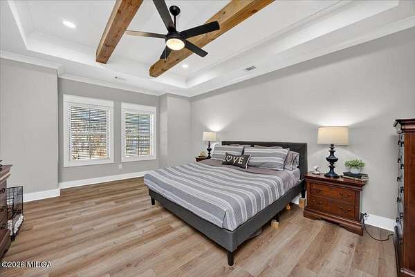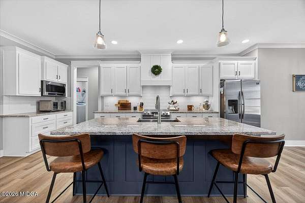 Better than new and beautifully maintained, this 4-year-old 4 bedroom, 3 bath home offers space, style, and resort-style amenities in a gated golf course community. Situated on a level 2.1-acre lot, this home combines low-maintenance living with room to relax and entertain. The welcoming front porch leads into an open-concept floor plan featuring a stunning great room with a moody accent wall and fireplace, seamlessly connected to the kitchen and breakfast area. The kitchen is the heart of the home with a large center island, perfect for gatherings and everyday living. Durable LVP flooring throughout adds style and ease of care. The main level includes a spacious primary suite plus a guest bedroom and full bath, offering flexibility for guests or multi-generational living. An office nook/work-from-home space makes working remotely easy and efficient. Upstairs, you'll find two additional spacious bedrooms, a full bath, and a versatile bonus room-ideal for a second living area, playroom, or media space. Outdoor living shines with a large covered back porch and patio, perfect for entertaining or enjoying peaceful views of the expansive lot. Residents enjoy incredible community amenities including golf, two pools, tennis and pickleball courts, playground, and fitness facility. Located just minutes from I-75 and zoned for high-performing Monroe County schools, this home offers the perfect balance of convenience, comfort, and lifestyle.