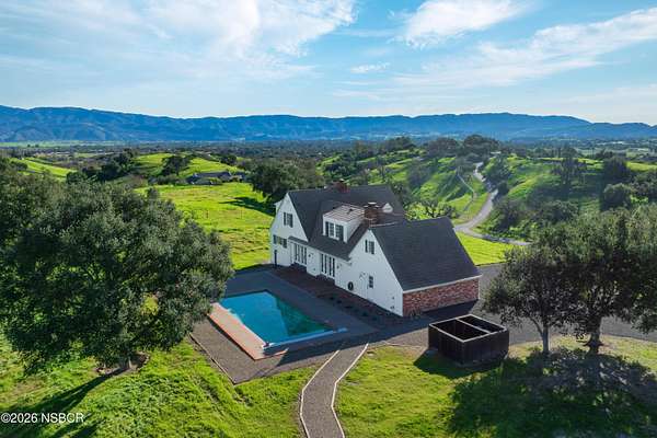 Set on 20.23+/- acres in the gated Rancho Ynecita community, this classic Farmhouse offers sweeping panoramic views of the Santa Ynez Valley along with timeless country character and thoughtful modern updates.The 3,740+/- sq ft residence features 3 bedrooms, 4 full baths, and a flexible layout designed for both comfort and creativity. A finished 1,000+/- sq ft basement expands the living potential, perfect for recreation, hobbies, or guest quarters. The primary suite includes a private office for work flexibility or furnish as a sitting room for your own personal sanctuary. Attached is an adjacent large finished room, ready to be the dream walk-in closet, gym or second home office. The formal living room is filled with abundant natural light and centers on a beautiful wood-burning fireplace, while the family room offers its own fireplace and several French doors that open directly to the pool, showcasing sweeping views of oak-studded hills and rolling countryside. Recent updates include new carpeting in the office and staircase, updated shower fixtures, a new water heater, indoor/outdoor carpeting in the basement, and grading and drainage improvements.Outdoors, the property is equally compelling. Enjoy an 8-foot deep pool for relaxing or entertaining, a chip-sealed driveway and motor court, and beautifully maintained oak trees, carefully trimmed and laced over the past five years. A separate barn with a finished interior provides versatile space for farm...