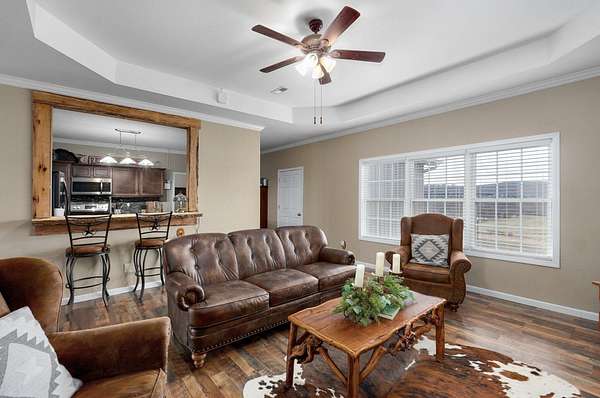 Tucked away in the serene beauty of the Ozark mountains, this charming 2,800 sq ft home offers the perfect blend of modern convenience and rustic country living. With one level of spacious, open living, the home features ample room to spread out and enjoy the peaceful surroundings.Located just under an hour from Springfield and 40 minutes from the vibrant Branson Landing, this retreat offers privacy without sacrificing convenience. Enjoy breathtaking sunrises over the misty pastures and awe-inspiring sunsets that paint the sky in vibrant hues.Set on 5 acres, this property offers true tranquility, with plenty of space for horses, gardens, or simply taking in the stunning views. The peaceful, natural beauty of the land makes it a true escape.If you're looking for a place to call home--where serenity meets modern functionality--this property is the perfect place to start your next chapter.Additional acreage available.