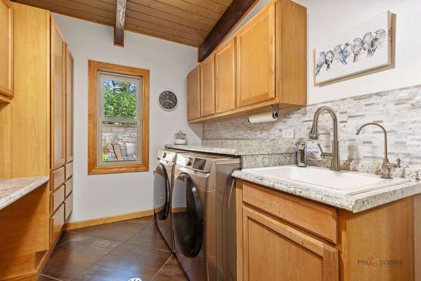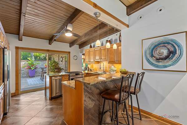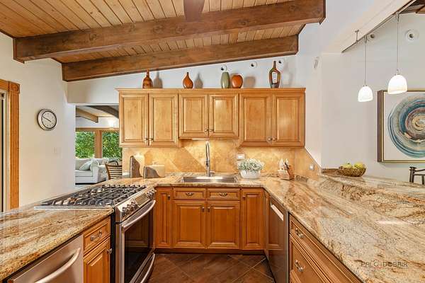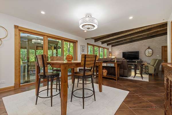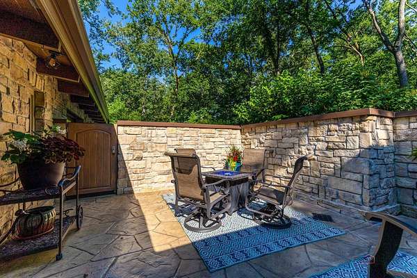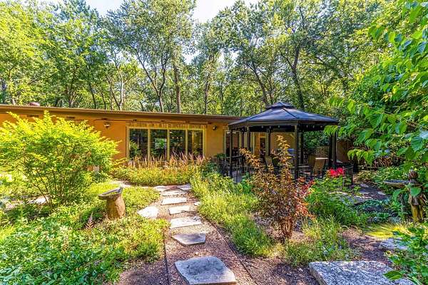 MULTIPLE OFFERS RECEIVED - Calling for Highest & Best by 8pm Sunday, August 17th Welcome to your private retreat in Riverwoods! Nestled on over 1 wooded acres, this beautifully maintained 3-bedroom, 2-bath ranch offers the peace, privacy, and space you've been looking for. From the moment you arrive, you'll be captivated by the breathtaking stamped concrete front patio-perfect for relaxing mornings or evening gatherings-conveniently located just off the gourmet kitchen. Step inside to find a grand living room featuring a striking floor-to-ceiling stone fireplace, vaulted beamed ceilings, and full walls of windows that flood the space with natural light. The kitchen is a chef's dream with granite countertops, a breakfast bar, and direct access to your serene front patio. Enjoy the warm, inviting family room that continues the vaulted beamed ceiling theme, or host effortlessly in the elegant dining room that opens to a stunning brick paver patio-ideal for seamless indoor-outdoor entertaining. The main-level primary suite offers a generous walk-in closet, while two additional well-sized bedrooms, two full baths, and a convenient laundry room complete the home. Skylights throughout add brightness and charm. Outside, take in picturesque views from the backyard oasis, surrounded by mature trees and nature. Located close to Lake County Forest Preserves with scenic trails and meadows, and offering easy highway access, this home truly has it all. Don't miss this rare Riverwoods gem-peaceful, private, and perfectly designed for comfort and entertaining!
