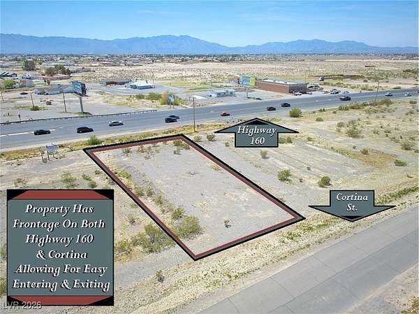 Don't Let The Cortina Address Fool You... This Outstanding Commercial Parcel Is On Pahrump's Main Highway 160 With Over 100 Feet Of Prime Commercial Frontage On Highway 160~~~This Fantastic Property Is .46 Acres With Power, Public Water & Sewer Already At The Property Line With NO EXTENSION FEES~~~Perfectly Positioned Near The Corner Of Highway 160 & Homestead/Winery Road & Just Past Pahrump's 1st Stoplight As People Enter From Las Vegas~~~This 20,000 Sq. Foot Property Is Zoned Neighborhood Commercial & Has Access For Entering & Exiting On Both Highway 160 & Cortina~~~A Restaurant With Drive Thru Is One Of Many Options On The Nye County Building Department's List Of Approved Businesses, Request The Full List For More Possibilities~~~The Seller Will Finance Your Pahrump Commercial Dreams (If Needed) With 95k Down & Monthly Payments~~~This Fabulous Parcel Has Excellent Potential & Will Be The Home Of Something Amazing~~~Make It The Place For Your Pahrump Commercial Plan Today!