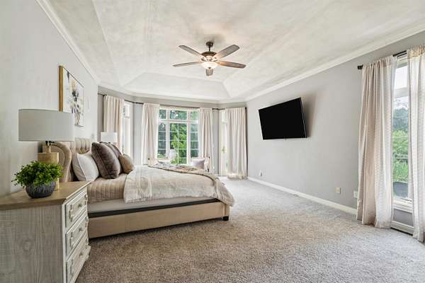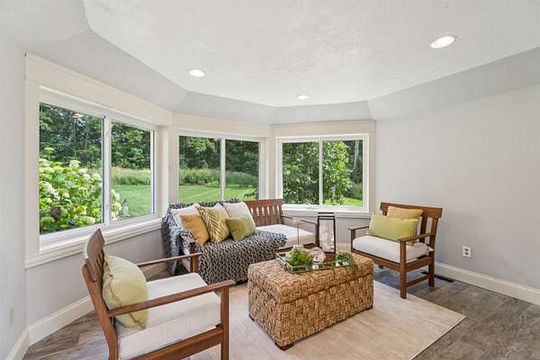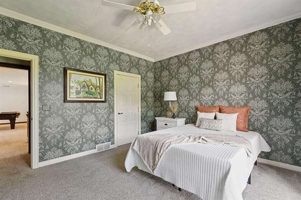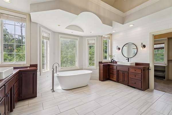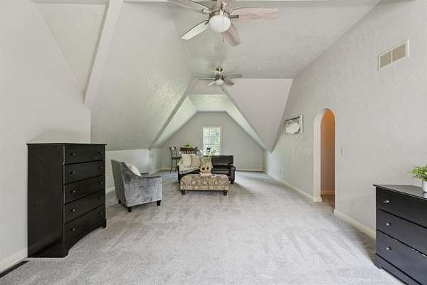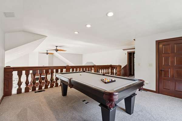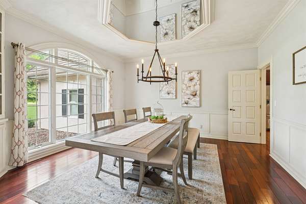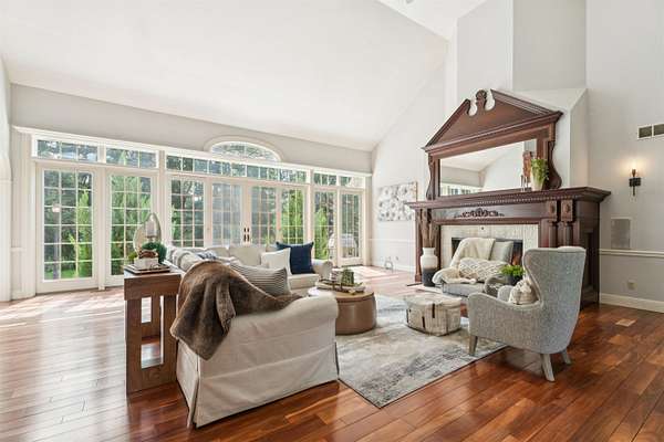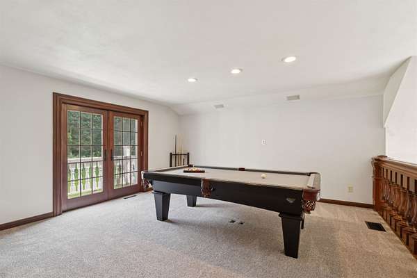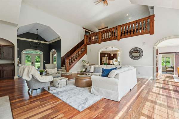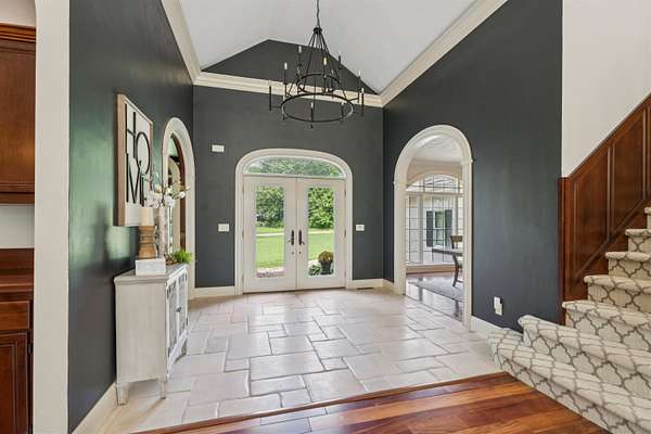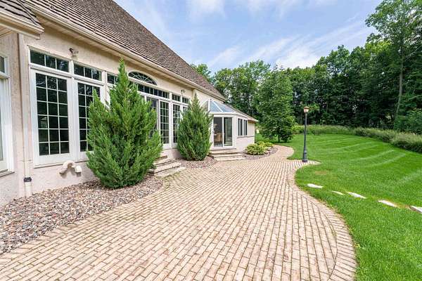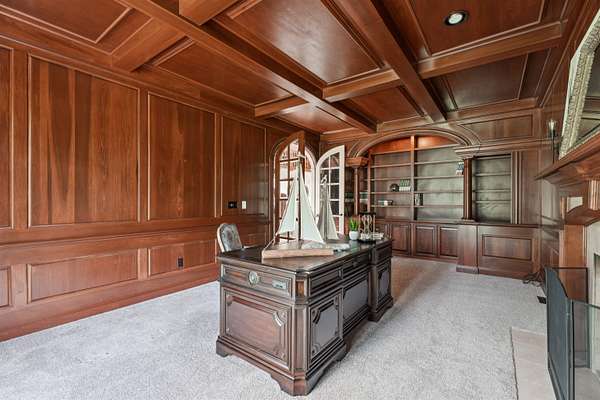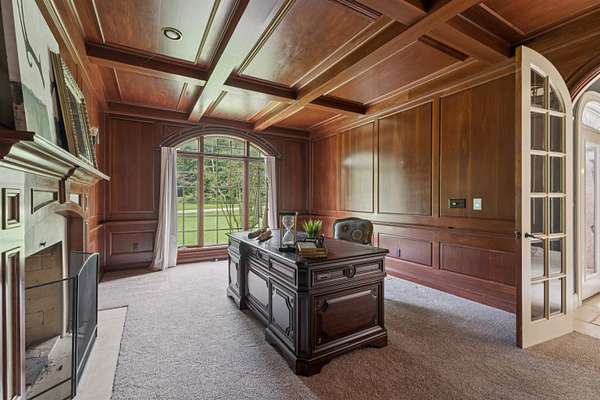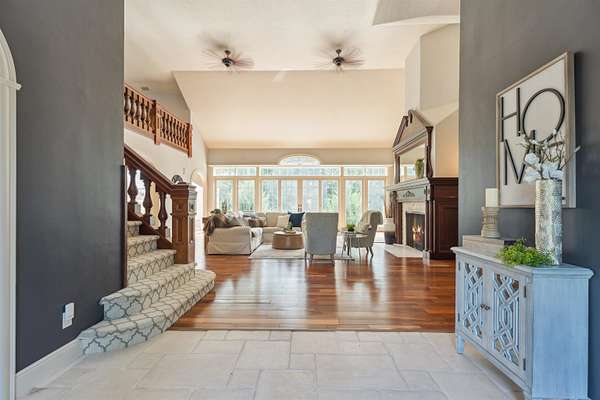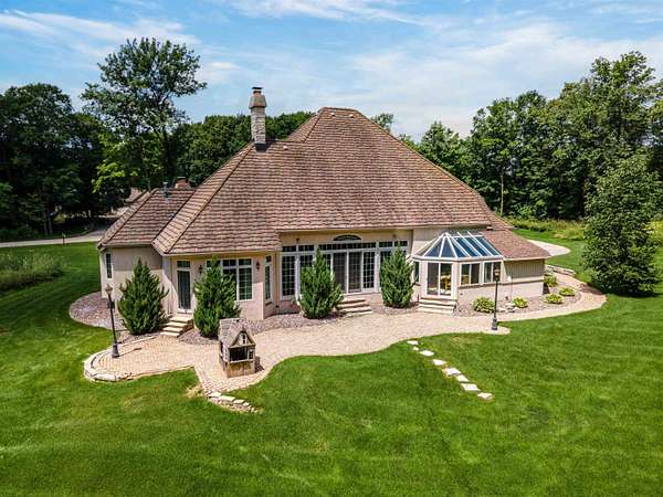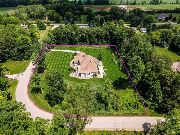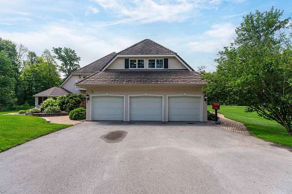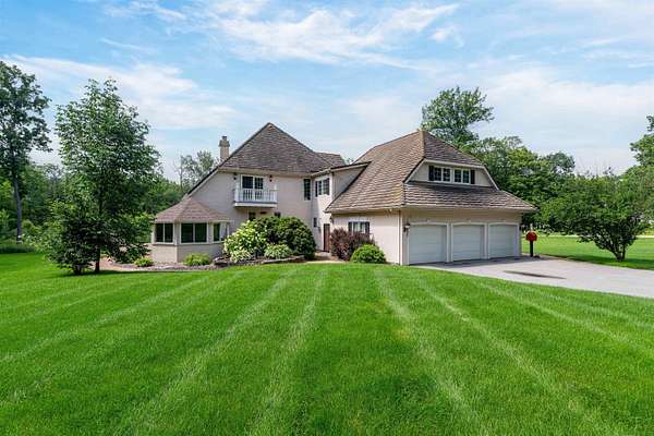 This executive home is situated on 1.5+/- acres and features an oversized 5 car-attached garage. Upon entering the foyer, you are welcomed by a grand living rm that boasts a wood fireplace and floor-to-ceiling windows providing a stunning view of the serene backyard. The gourmet kitchen is sure to impress complete w/ an adjacent breakfast area & a four-season rm. Formal dining w/ built-in hutches is sure to please. The Office is equipped with bookshelves and a fireplace. The primary bedrm is conveniently located on the main flr and comes with a walk-in closet and a private bathrm that includes a soaking tub and a tiled walk-in shower. Upstairs you will find 4 additional bedrooms, full BA and a loft area. The lower level is partially finished to include a weight room and full BA with sauna.