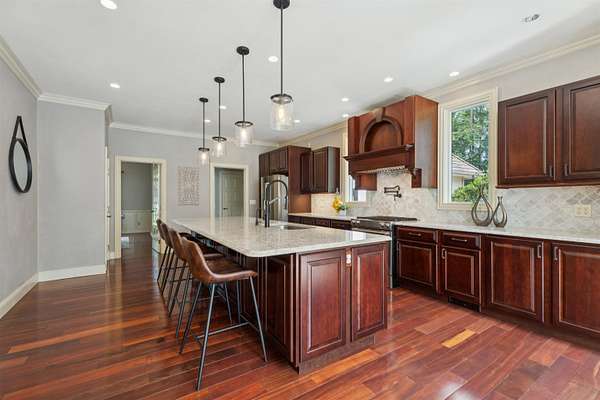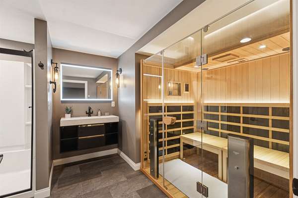 - At Least 1 Bathtub, Formal Dining, Kitchen Island, Pantry, Sauna, Walk-In Closet(s), Walk-In Shower, Water Softener-Own, Wet Bar, Wood/Simulated Wood Floor