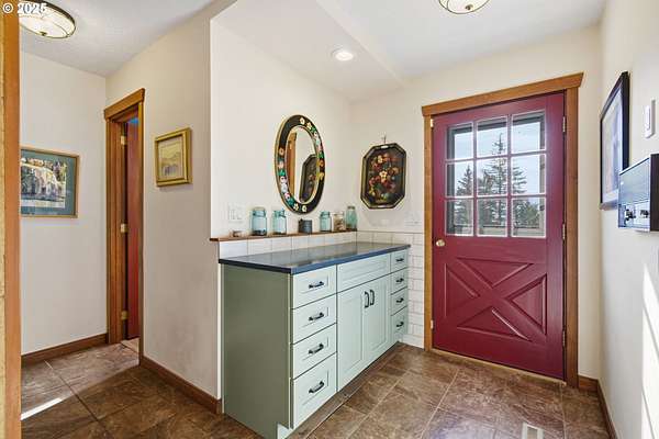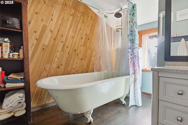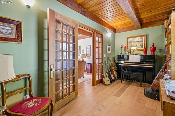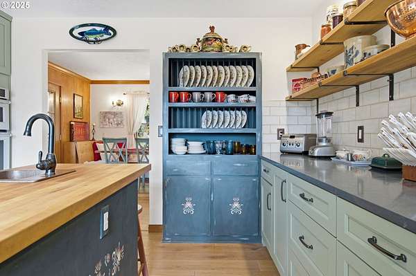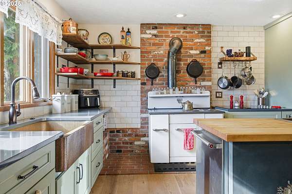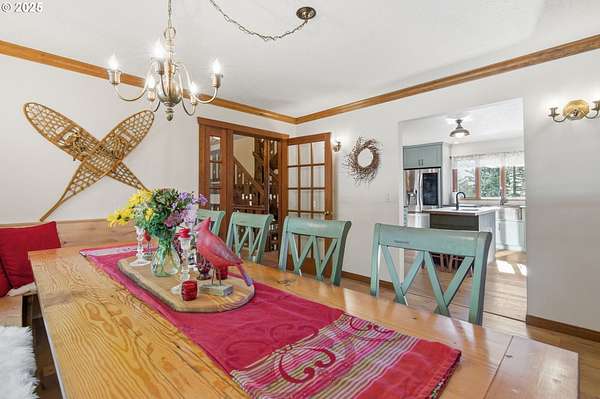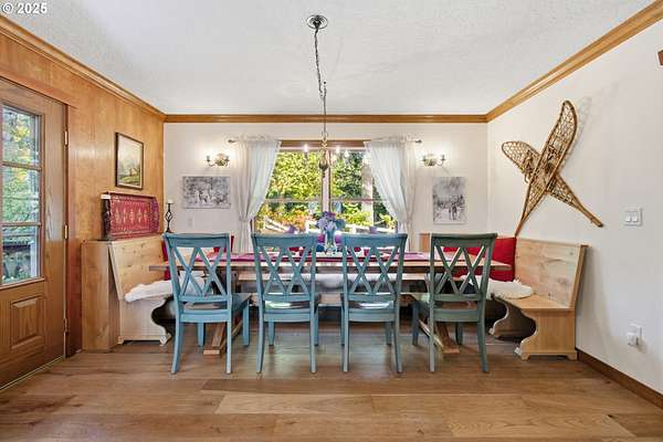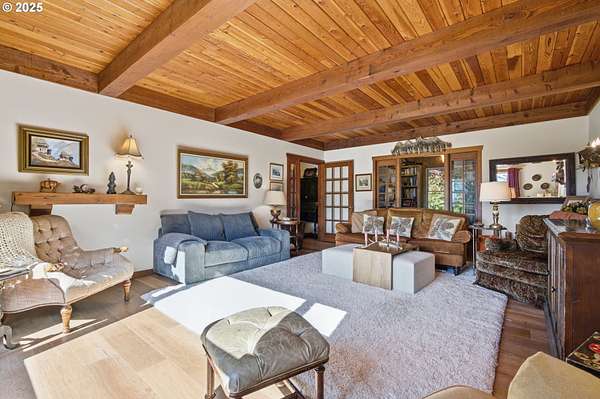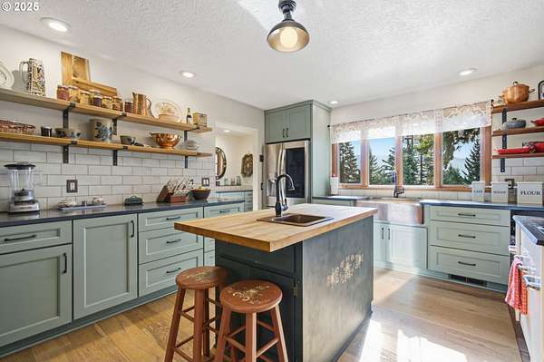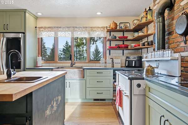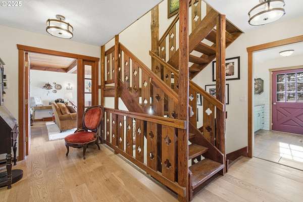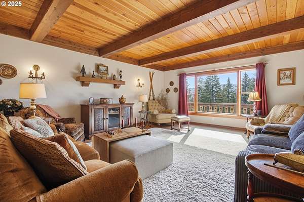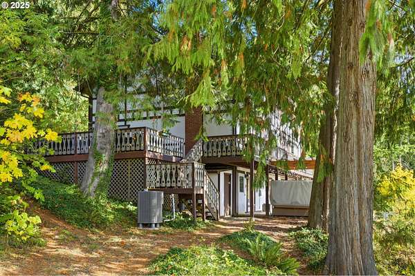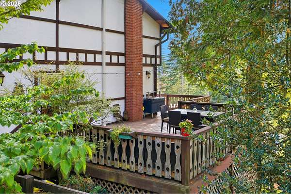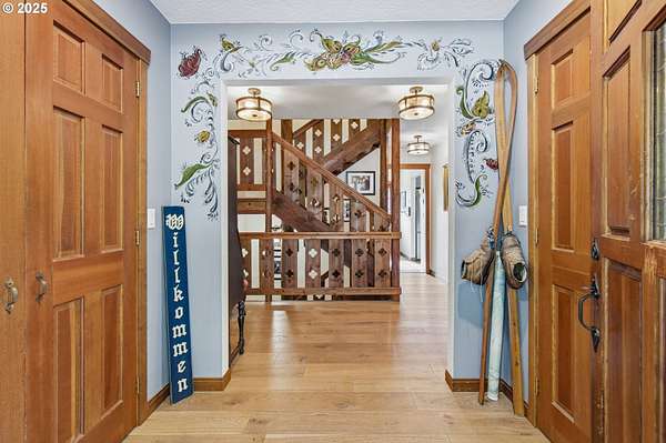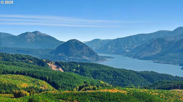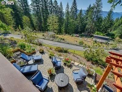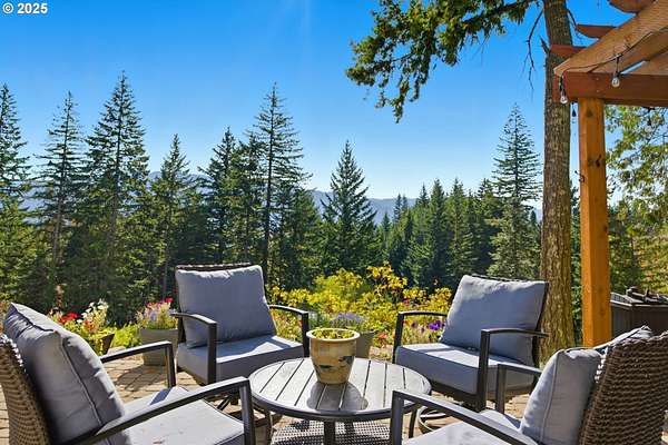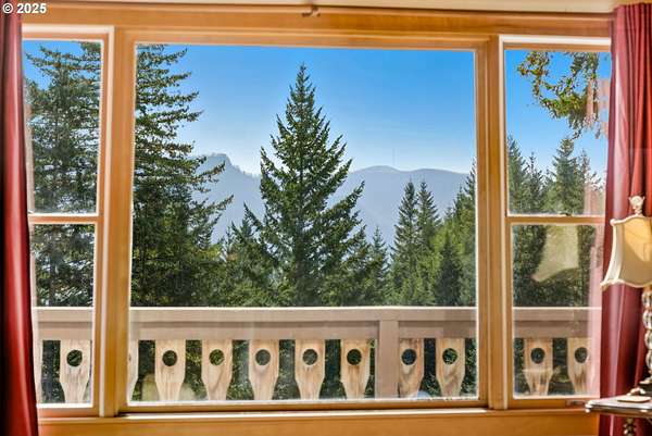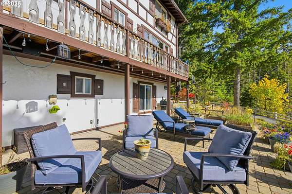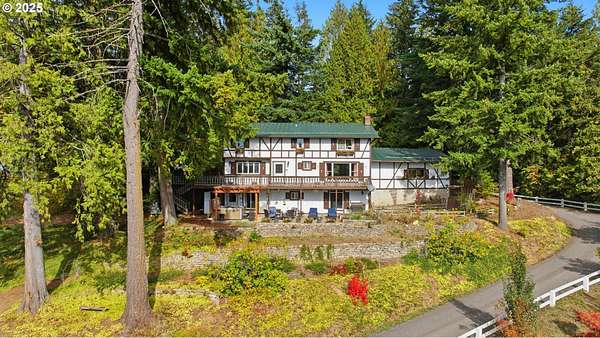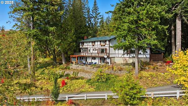 Tucked away on 22 private acres above Stevenson, Washington, this handcrafted Bavarian-inspired home showcases timeless craftsmanship and sweeping Columbia River Gorge views. Built with care and detail rarely seen today, it features European hardwood floors, old-world accents, and a hand-cut cedar staircase milled from the property's own timber. The built-in dining table-crafted from reclaimed wood from the historic Vancouver train depot-adds heritage and charm to the home's warm gathering spaces.The stunning chef's kitchen anchors an open great room with vaulted ceilings and massive view windows that make the Gorge feel like part of the decor. With five bedrooms, 3.5 baths, and a finished daylight basement complete with kitchen bar and private entrance, there's flexible space for guests, multigenerational living, or extended stays.Step outside to a private patio with a hot tub, where quiet seclusion meets endless views. Explore more than a mile of private walking and riding trails that wind through the property, border state land, and follow 800 feet of Wolfe Creek frontage-offering direct access to nature and miles of adventure. From the upper acreage, take in panoramic views of the Gorge, Bridge of the Gods, and Cascade Locks.Just minutes from downtown Stevenson, Skamania Lodge, and under an hour to PDX, this rare property blends history, privacy, and the best of Pacific Northwest living.