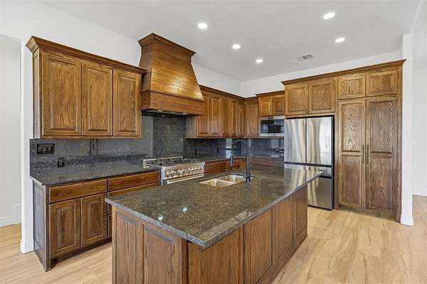 Step inside and you'll feel it right away. Warm tones, dark-stained cabinets, luxury vinyl plank flooring, and a floor plan that actually makes sense. The kitchen is a standout with a hidden walk-in pantry and plenty of room to cook, gather, and entertain. The living room centers around a propane fireplace insert, giving the space that cozy Texas feel year-round.