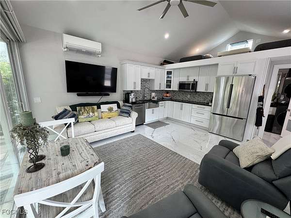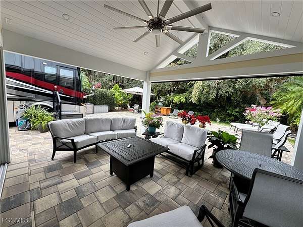 This much-welcomed, first-of-its-kind offering to market is nestled within the expansive, river-access luxury RiverBend Motorcoach Resort and is uniquely positioned overlooking a tranquil preserve, where natural beauty and privacy create a peaceful, storybook setting from the moment you arrive. Built in the summer of 2024, the 16' x 24' coach house showcases the newly approved 16' x 14' extended lanai, completed in December 2025, and thoughtfully designed to elevate outdoor living to the ultimate Florida experience. Equipped with remote-controlled roll-down screens, this space is bright, airy, and effortlessly blends indoor and outdoor living. With the extension, the total under-roof living space expands to an impressive 16' x 38', redefining what luxury motorcoach living can be. The extended lanai becomes the natural gathering place-perfect for quiet morning reflection as the preserve awakens, afternoon lounging with gentle breezes drifting through, and entertaining friends well into the evening, when conversations linger and nights feel endless. Protected from the elements and pests, this space allows you to dine, relax, and unwind without ever feeling the need to retreat indoors. Evenings here are simply better-peaceful, private, and inviting. The lot itself is slightly longer than many, offering generous space on the lanai for grilling, using a smoker, or creating your ideal outdoor retreat. Privacy is a true standout, as this is one of the few pull-in lots in the resort that looks into a preserve and wooded area, eliminating the need to cover your coach's front windshield when you settle in for the day. Inside, an open-concept living design unfolds with a charming kitchenette at its heart, creating a warm and welcoming space for entertaining, slow mornings with coffee, or relaxed evenings that flow seamlessly into the screened lanai. The multi-purpose bathroom features a front-loading washer and dryer, a large vanity, and a spacious shower with a built-in niche to keep everything neatly tucked away. Above, the loft offers comfortable accommodations for overnight guests visiting sunny Florida and doubles as convenient storage when not in use. Situated in a quiet location with quick access to the River Clubhouse, and surrounded by lush tropical landscaping, this lot truly feels like a private oasis. From the moment you arrive, it's easy to fall in love with the serenity, comfort, and thoughtful design that make this exceptional property so special. Life at RiverBend Motorcoach Resort flows effortlessly with the Caloosahatchee River as its backdrop, offering sweeping water views, cooling breezes, and unforgettable sunsets. Social energy thrives at the seasonal River Clubhouse with live music, themed dinners, and gatherings, while the Creations Clubhouse inspires creativity. Days are filled with pickleball, fitness, poolside lounging, and scenic walks, RiverBend isn't just a resort, it's a lifestyle you'll never want to leave.