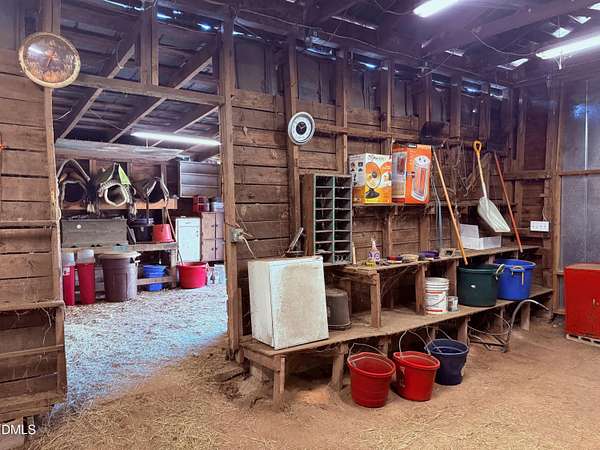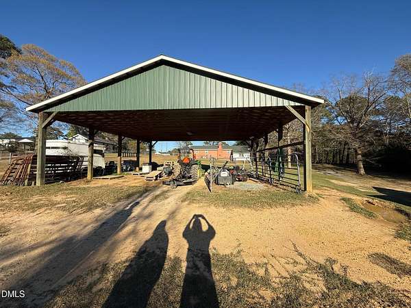 Welcome to a RARE OPPORTUNITY for mini farm lovers and homesteaders alike! Situated on over 3 acres of usable land, this mini farm is thoughtfully set up for both equestrain living and country life--with NO HOA restrictions. The full brick ranch home offers 3 bedrooms and 2 full baths, featuring an open-concept layout designed for comfort and connection. The spacious living room flows into a bright breakfast area, while the center island creates a natural hub for gathering, meal prep, and farm-to-table living. A large laundry/utility room provides the functionality every working property needs, while the tall crawl space offers valuable additional storage-perfect for tools, storing canned foods, or seasonal items. Equestrains/animal lovers will appreciate the solid, well-built barn complete with tack room, four horse stalls, and generous space for hay and feed storage. The open pasture is ideal for grazing and turnout, offering plenty of room for your farm animals to thrive. A large carport shelter provides excellent coverage for your tractor, hay or equipment, while the additional tiny house offers endless potential as a guest space, workshop- just needs a little vision and some love. Whether you're looking to start a mini farm, or simply enjoy wide-open space and independence, this property is ready to support your lifestyle. Come experience the freedom of country living -your homestead dream starts here. EASY access to I-40 (5 mins and you are on I-40), 25 mins to downtown Raleigh and 35 mins RDU airport.