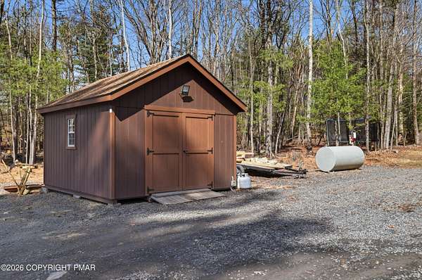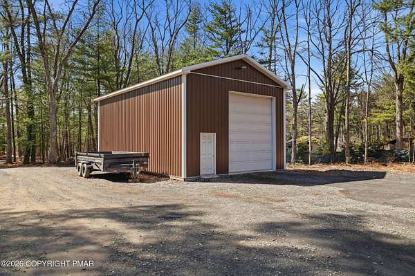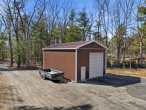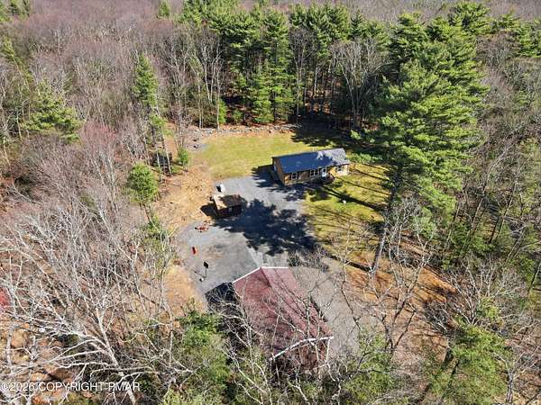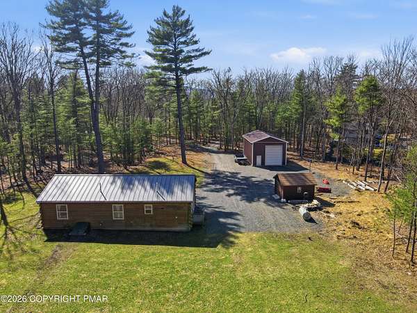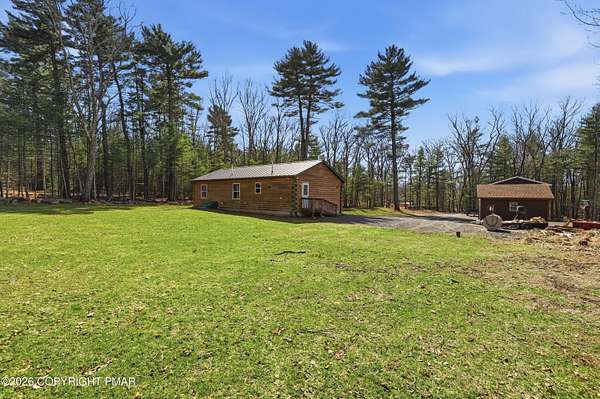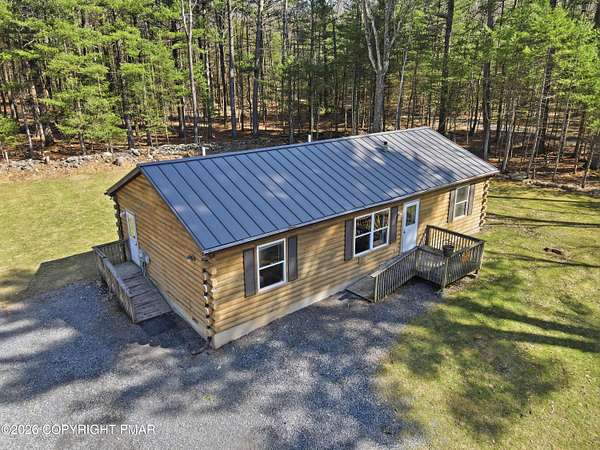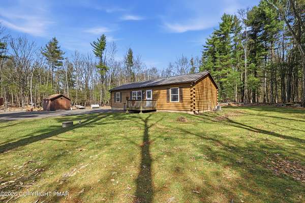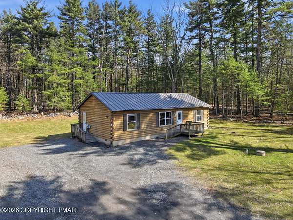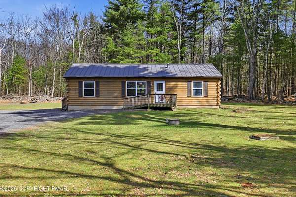 Welcome to your private retreat in Henryville! No HOA and nestled on 2.3 acres of beautiful land, half wooded and half cleared, offering the perfect blend of nature and open space. Whether you love gardening, riding quads, hosting campfires, or simply enjoying peaceful surroundings, this property delivers endless outdoor possibilities. Tucked far back from the road down a long driveway, this 3-bedroom, 2-bath Ranch built in 2000 offers the charm of a log-style design with cedar wood construction. Multiple heating options provide flexibility and comfort year round, while the brand new 2026 standing seam roof adds both durability and style. Outside, the property truly shines. Enjoy a large 24x40 detached steel garage, and an additional smaller shed, perfect for all your tools, toys, and storage needs. The outdoor space is ideal for gatherings with family and friends, featuring a fire pit and plenty of room to create your own vision. This home has been lovingly enjoyed for its privacy, scenic surroundings, and the memories made here and now it's ready for its next chapter. With many upgrades and renovations already completed, all that's left is for you to make it your own. Minutes away from gas stations, stores, dining, outlets , amusement, Camelback, Great wolf & Kalahari, highway access and more. Come experience the space, the privacy, and the potential! Schedule today!