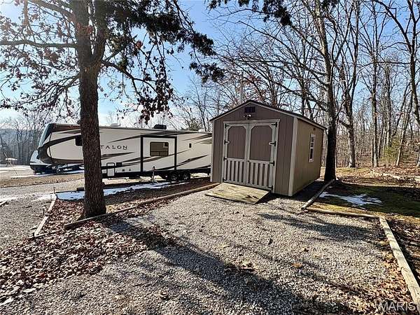 Est $644/moA rare find...this full-time camping lot is level, well-manicured and is ready for lots of summertime fun! This lot is set up for two campers with electric, water and sewer hook- ups. The nearly-acre lot is cleared at the front with some scattered trees and then is wooded at the back for added privacy. The property comes with two storage sheds for all your camping and lake gear. There is a firepit for nighttime smore roasting. If you're ready to make memories, you better jump on this opportunity. The gated community of