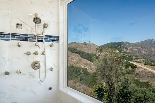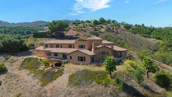 SELLER FINANCE AVAILABLE Perched on over 6 acres of rolling land, this Mediterranean-inspired estate offers sweeping valley views and a rare opportunity for elevated living. The home is beautifully framed and features dramatic vaulted ceilings, a grand rotunda entry, and finishes that reflect refined craftsmanship. Multiple fireplaces add warmth and ambiance throughout while expansive glass doors seamlessly connect indoor spaces to the natural beauty outside. The grounds are lush and private, with mature landscaping and an avocado grove that adds both tranquility and income potential. With generous driveways and parking, this residence strikes a perfect balance between peaceful seclusion and easy access to amenities. Positioned in a desirable community and built with attention to detail, this property is made for those seeking elegance and room to breathe.