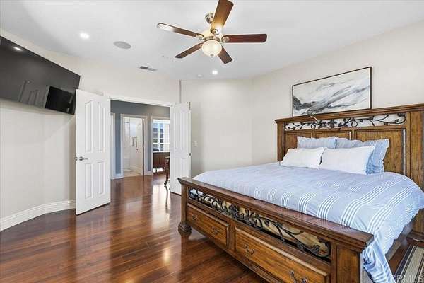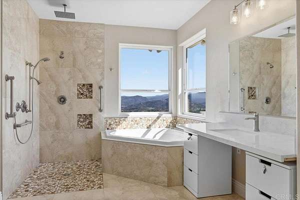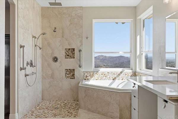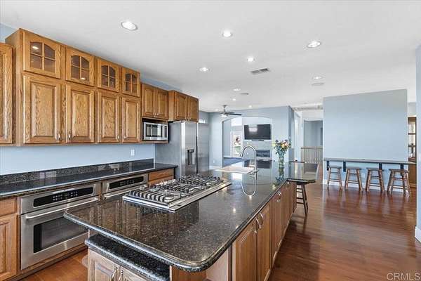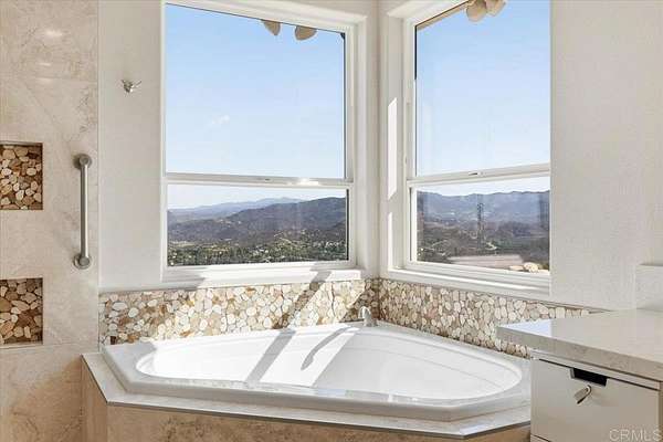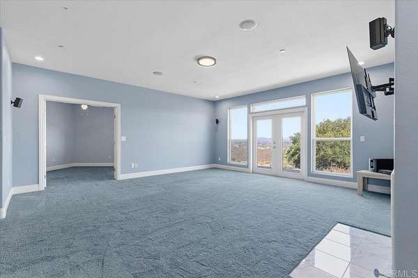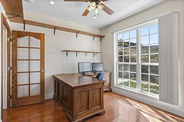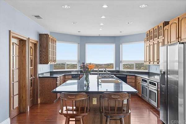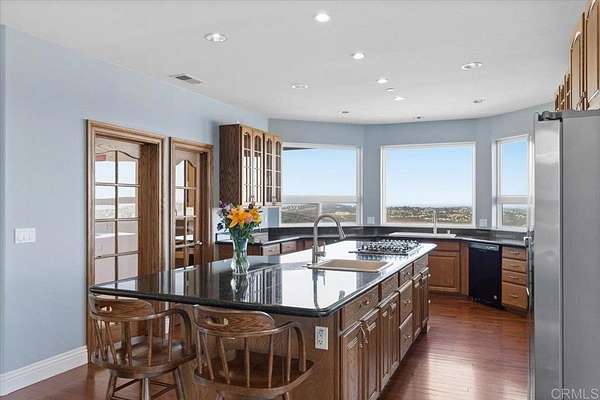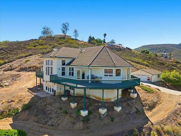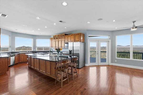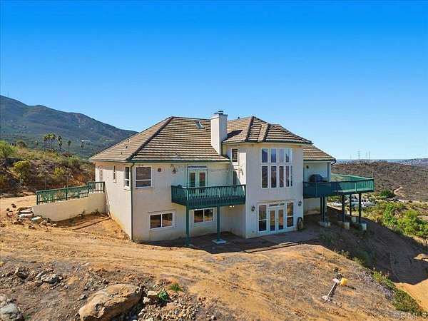Welcome to the top of Millar Ranch Rd! This beautifully crafted custom home offers 4,006 sq. ft. of refined living space on 7 peaceful acres. Designed with both comfort and sophistication in mind, this residence showcases spectacular panoramic views from nearly every room. As you step inside, you are greeted with soaring ceilings, elegant hardwood flooring, and abundant natural light that fills the grand entry and open living areas. The main level includes a spacious living room, a formal dining area, a private office with handsome French oak doors, and a well-equipped laundry/mud room. The chef's kitchen is a true showpiece, featuring an oversized island with built-in cooktop and sink, double ovens, granite countertops, a generous walk-in pantry, and a bright breakfast nook that opens to the wraparound deck ideal for entertaining or simply relaxing while taking in the sweeping vistas. The primary suite on the main floor offers a spa-like bathroom complete with soaking tub, dual vanities, and a roomy walk-in closet. An additional bedroom, full bath, and convenient powder room complete the main level. Downstairs, discover an expansive family room with its own entry access that leads out to the picturesque landscape. With two more bedrooms plus a bonus room, a full bath, and a large basement offering ample storage or potential for a gym, wine cellar, or even a secondary kitchen, perfect for multi-generational living. Additional features include an oversized two-car garage, RV parking with hookups, and an integrated sound system with speakers throughout the home. The property backs directly to the San Diego Wildlife Refuge, ensuring peace and privacy. Enjoy quiet country living just moments from all the amenities of Rancho San Diego Town Center.