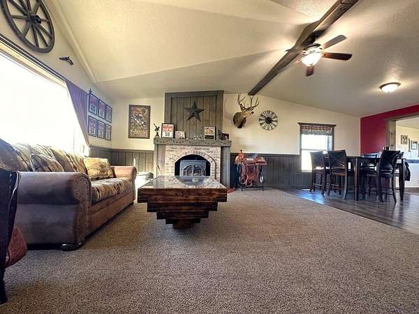 Est $4,019/moBeautiful 5 bed, 2 bath home on 10 acres-house on 5 acres plus adjoining 5-acre parcel included. Comes with 7 acre-feet of 1927 priority water rights and a private well. Horse corrals, barn, and an enormous detached garage that fits at least 3 trucks, a car, and toys. Built in 2000 with tasteful updates and great space to entertain. In an established neighborhood just outside town with peaceful views. Connex boxes and portable corrals excluded. Buyer and buyers agent to verify all information.