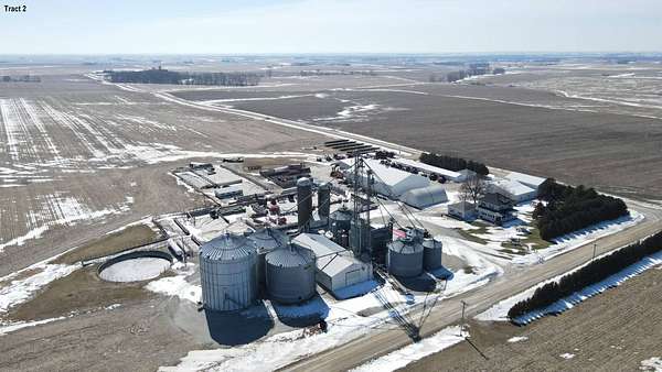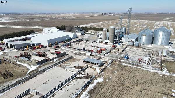 $5,000 is the nominal opening bid price per acre for Tract 1. This property will be offered in 2 tracts on a timed online auction with bidding ending April 30, 2026. Please reach out for more details about this property and how the bidding process will commence. Bidders please pay attention, as this timed online auction will be an absolute auction, selling regardless of price! Tract 1 offers an excellent opportunity to purchase investment quality farmland with an 82.6 CSR. Tract 2 is an acreage setup to support your farming operation, including buildings, grain bin setup with over 300,000 bu. capacity and a cattle feed lot. 51± Acres - Sells in 2 Tracts Immediate Farming Rights Available! Tract 1 - 39± Acres FSA indicates: 37.78 cropland acres. CSR2 is 82.6 on the cropland acres. Seller states land has tile, no tile maps available. Located in Section 29, Middlefield Township, Buchanan County, Iowa. Tract 2 - Home, Buildings, Grain Bins & Cattle Setup on 12± Acres - pending final survey Home Information: 4-bedroom, 2 story home with 2,128 total sq. ft. of living space on two levels, built in 1919. Main level offers an oak kitchen with breakfast island, bult in desk & built in china cabinet, formal dining room, formal living room with adjacent TV room & private toilet. The upper level features four bedrooms, including one currently used as an office, a bathroom with a walk-in shower, and a walk-up storage attic. The basement has a large laundry room with jetted tub, shower, washer & dryer, plus adjoining storage rooms. Amenities include: Attached 28'x32' insulated garage w/ floor drains, Enclosed porch, Front porch, Beam central vac system, GeoComfort Geothermal system and 2 wells. Outbuildings: 80'x120'x18' steel frame building w/ 26'x16' and 24'x16' OH doors, openers and concrete floor. 32'x48'x12' shop w/ 22'x14' OH door & opener, mezzanine storage, parts room, office & break room w/ 3/4 bath & laundry room, Climate Master Ultra Classic high efficient geothermal in shop. Attached 20'x50' shop w/ 12'x10' OH door, opener & bathroom. Attached 40'x60'x18' wash bay w/ MiT-M 3000 hot water pressure washer, 28'x16' OH door, opener & in floor heat. 40'x60' Quonset w/ (2) 16'x12' OH doors & concrete floor. 48'x48' open faced building w/ 3 stalls & waterers w/ attached 16'x95' shed. 26'x92' farrow barn converted to storage w/ attached 26'x64' nursery. 22'x24' garage. (3) concrete silage bunkers include: 32'x92', 36'x60', 28'x60'. Grain bins: AGI/MFS 101,220 bu. MFS 51,185 bu. MFS 51,185 bu. MFS 23,393 bu. MFS 23,353 bu. MFS 16,195 bu. MFS 7,134 bu. MFS 4,118 bu. hopper bin. 50'x99'x14' flat storage w/ dump pit and DMC Trans-Fer 2100. Delux DPX4T 140100 25' Continuous Flow grain dryer. 16'x28' shed w/ grain dryer control room. (3) Conveyor legs. 2,847 bu. holding bin. 12,269 bu. & 6,185 bu. concrete silos. Butler 3,468 bu. (5) Hopper bins. Roller mill. Other Information: 900± head cattle lot setup with 5 pins w/ fence line bunks, SS waterers, alley ways, loadout chute & 225,600 gal. concrete slurry pit. Balance of land is approx. 1.5 tillable acres with a 90.1 CSR2. 100kW Solar Array System. Included: Dinner bell, Short rock by back patio, Short Family Farm signage, Refrigerator, Stove, Microwave, Dishwasher, Washer, Dryer, (1) Upright freezer, (1) chest freezer, (2) Water softener systems, upstairs office workstation, Red couches, Washer & Dryer in shop, Oil tank distributor in shop, Air compressor in shop, MiT-M3000 hot water pressure washer, Air compressor in flat storage, Pallet racking in outbuildings, (2) Large fuel tanks & pump, SS tank. This auction has a 5% Buyer's Fee.