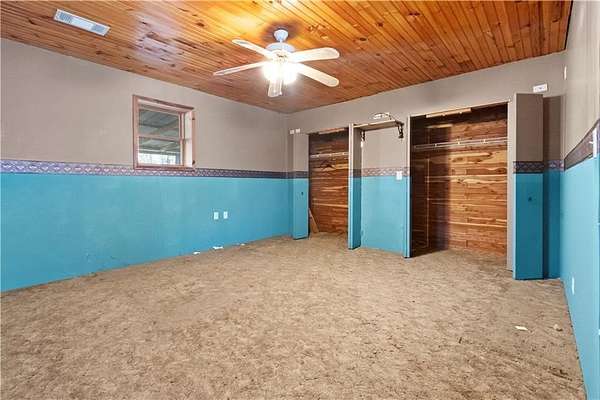 The property includes two large heated metal shops with 220 amp, one with a 12' overhead door, plus THREE RV HOOKUPS & a detached RV carport--ideal for hosting friends, family, & all your lake toys.