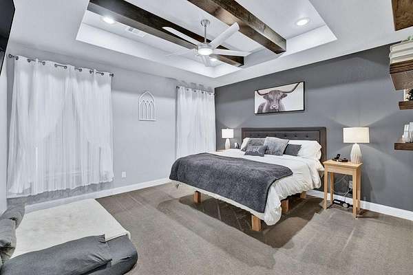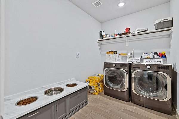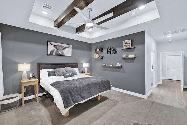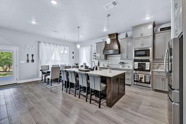 The primary suite offers a true escape, complete with a spa-inspired ensuite boasting dual showers, an oversized soaking tub, and a generous walk-in closet. Secondary bedrooms are equally spacious and share a beautifully designed full bath. Upstairs, an unfinished bonus space offers endless possibilities--create a game room, media space, teen hangout, or private guest suite! Functionality meets lifestyle with a large utility room (complete with a built-in dog feeder!) and a pet-friendly built-in dog door leading to a secure fenced area. Outside, soak up peaceful Texas mornings from your covered patio or dream big with all the open space. A massive detached shop with electricity offers incredible versatility--store your toys, run a business, or tackle your next big project. This home is ideal for those seeking wide-open spaces, flexibility, and freedom without sacrificing comfort. Don't miss your chance to make this one yours!