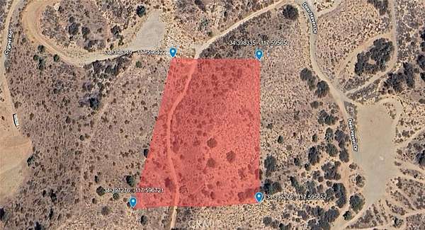 Est $260/mo2.48 acres zoned Residential Vacant Land ready for your vision. Land parcel identified by APN:3036-241-26-0000. No situs address assigned by county; address shown is for MLS input only. GPS coordinates: 34.397778, -117.596115. Buyer to verify zoning, permitted uses, and utility availability.