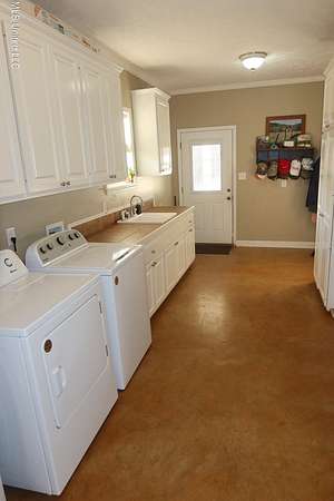 3-car carport provides covered parking, and the adjacent full laundry room includes abundant cabinet storage for organization and convenience.