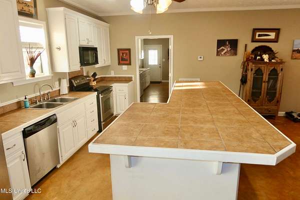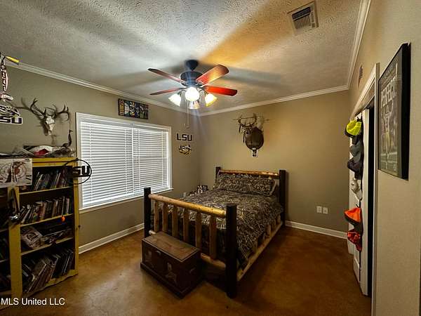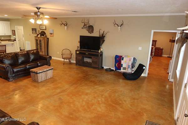 This 3 bedroom home in Liberty MS features 2 full bathrooms and durable concrete flooring throughout the main level, making daily upkeep easy. The spacious primary suite includes two walk-in closets, providing exceptional storage and comfort.