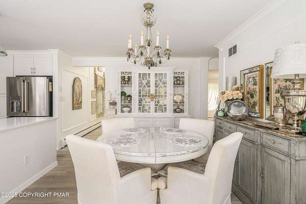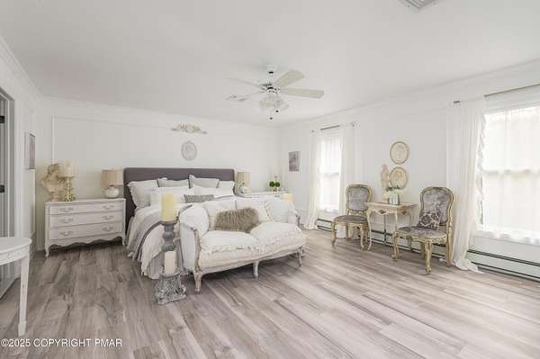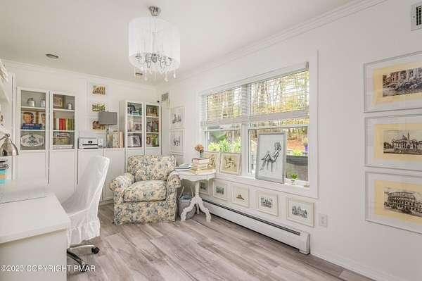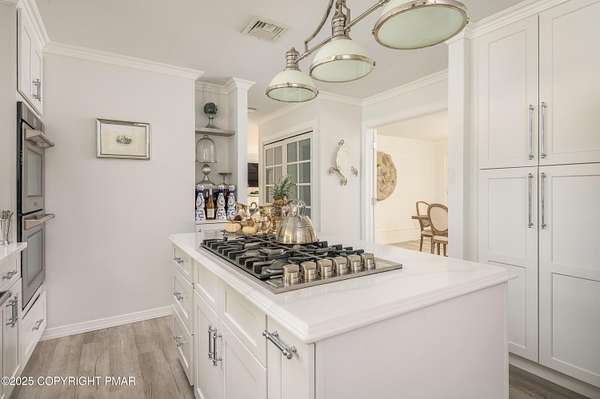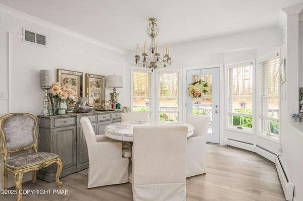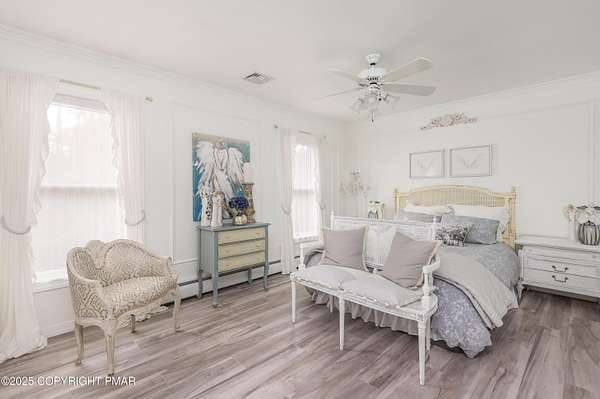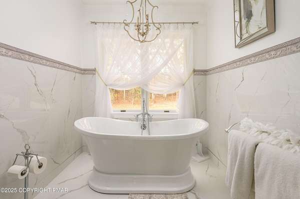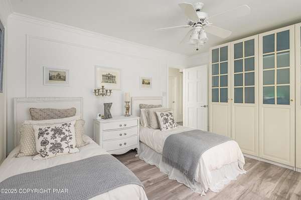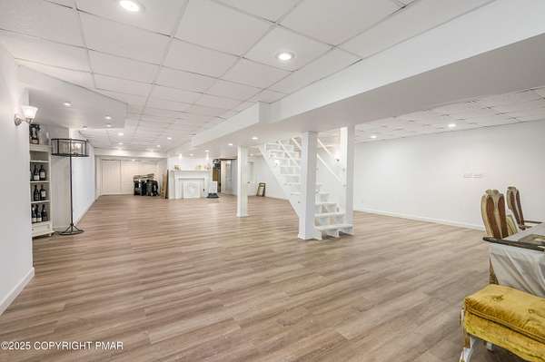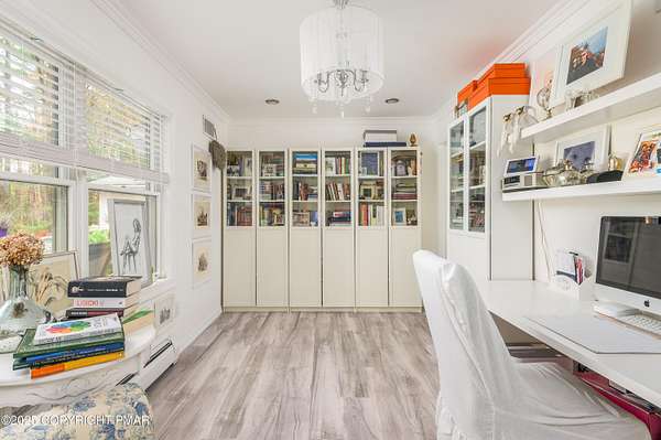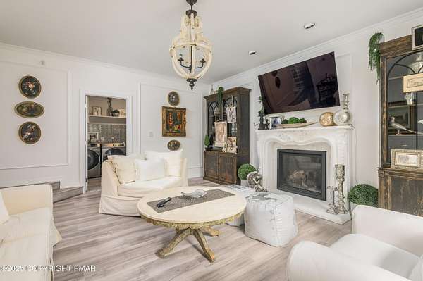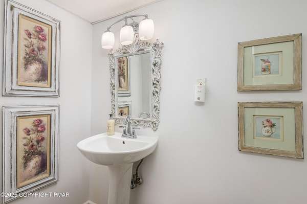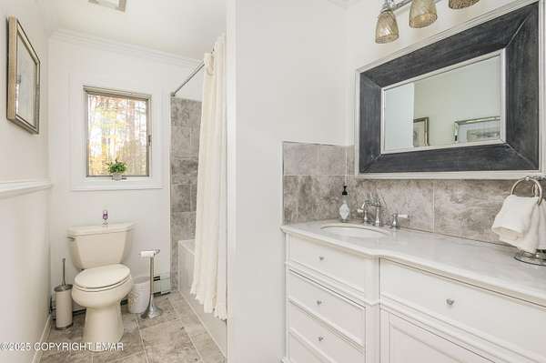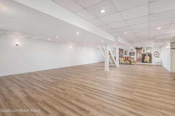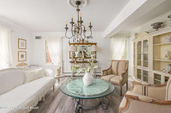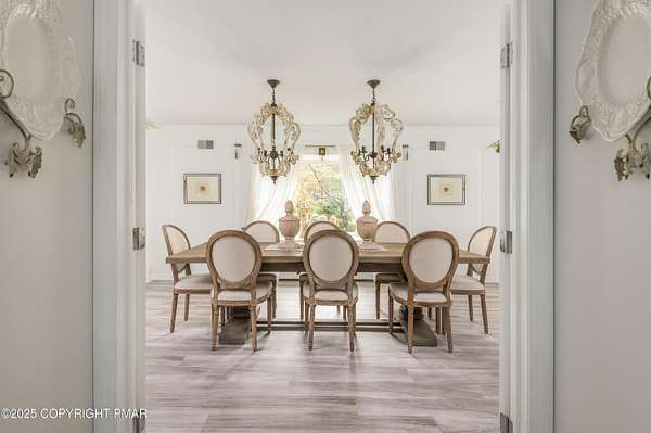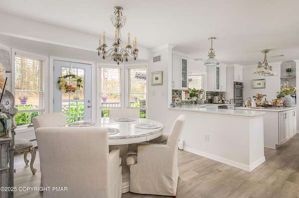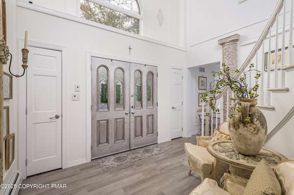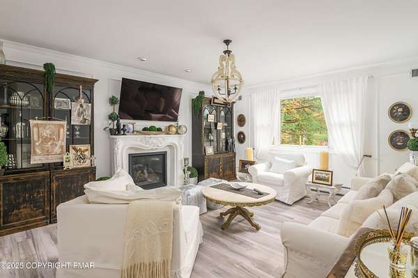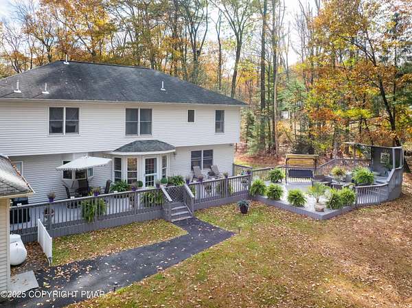 Experience refined living in this stunning, meticulously designed 4-5 bedroom, 3.5 bath brick residence tucked away on a quiet cul-de-sac. Every detail of this luxury residence reflects uncompromising quality and masterful craftsmanship. Arrive through a circular driveway framed by professional landscaping and a classic fountain, setting the tone for the elegance within. A dramatic two-story foyer welcomes you with natural light and views into the home's beautifully curated spaces. The designer kitchen serves as the centerpiece, offering custom white cabinetry, quartz countertops, premium stainless appliances, and stylish finishes. Enjoy casual meals in the sun-filled breakfast area or host memorable dinners in the formal dining room. The living room and family room, anchored by a warm fireplace, provide exceptional comfort and flow for everyday living and entertaining. The primary suite is a luxurious retreat with a generous walk-in closet and a spa-inspired bathroom featuring high-end finishes and an elevated modern aesthetic. A fully finished lower level expands your possibilities with additional space suited for a variety of household amenities or storage space. Step outside to an expansive deck overlooking a peaceful, park-like yard: ideal for outdoor dining, morning coffee, or unwinding in nature. A two-car garage, abundant storage, and a serene setting enhance everyday convenience. Home also features a whole house UV water treatment system and radon mitigation system. Prime location places you minutes from the Poconos Premium Outlets, Mount Airy Casino, Top Local Ski resorts, water parks, and I-80, offering unmatched access to recreation and easy commuting. This is more than a home; it's a lifestyle of comfort, elegance, and ease. One year of coverage with America's Preferred Home Warranty included in the sale! Schedule your private tour today and don't miss the opportunity to make this your next home!