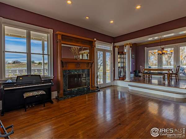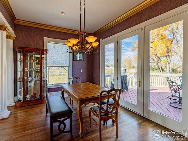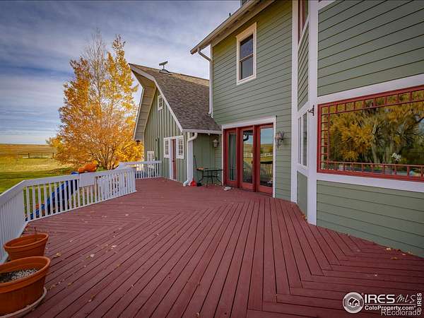 Escape to a private paradise that masterfully blends serene seclusion with modern convenience. This stunning 13.5-acre estate is more than a property-it's a meticulously crafted experience, offering a perfect fusion of rustic Colorado charm and sophisticated luxury. It's a rare opportunity to own a veritable piece of heaven, designed for those who refuse to compromise. Centered around spring-fed "Hinkley Lake," this is a true sanctuary. A well-maintained trail encircles the shoreline, perfect for morning hikes with your dog or evening horseback rides. The only sounds are the gentle water and the calls of eagles and songbirds, all just steps from your back door. The crown jewel of the estate is its incredible, versatile barn. Currently a premium dog kennel, its potential is limitless. It can be effortlessly converted into a premier equestrian facility, a massive workshop, an artist's studio, or an entertainment venue. Fully heated and featuring an office, bathroom, and kitchenette, it's a turn-key solution for any visionary. Combined with fenced pastures and a riding arena, it's perfect for animal companions or grand projects. The spacious, sun-drenched residence is designed for living well. Beautiful hardwood floors flow throughout the main level. The great room features a cozy, stone fireplace, while the kitchen is a chef's delight with a breathtaking picture window framing the lake. The luxurious master suite is a private haven with a romantic fireplace and a spa-like ensuite bathroom, offering serene, private views of the water. Outdoor living is equally curated. Enjoy morning coffee on the covered front porch with stunning western sunsets, or host unforgettable gatherings on the expansive back deck overlooking mature trees and the shimmering lake. This property offers the best of both worlds: the total peace of a 13.5-acre estate, just 15 minutes from vibrant downtown Fort Collins and Timnath. You'll have easy access to top-rated schools, shopping, and dining.