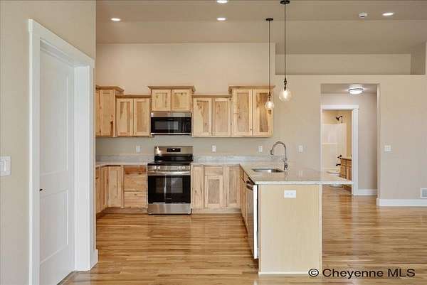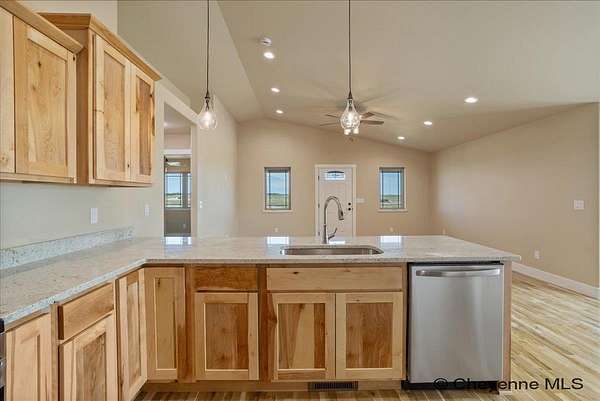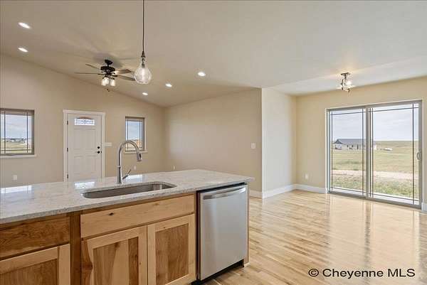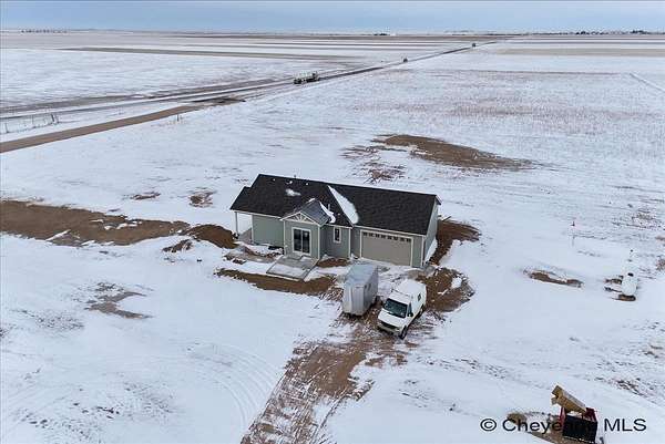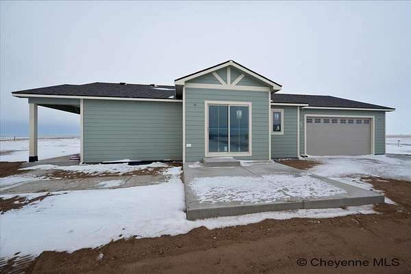 Brand New Home by Leaning Tree Homes in Addison Meadows Subdivision on a quiet cul-de-sac, just 35 minutes east of Cheyenne. This "Madison Plan" offers an open floor plan with vaulted ceilings features 2 bedrooms, 2 baths and main floor laundry. Gourmet kitchen with generous countertops and work area, and upgraded stainless kitchen appliances. Glistening hardwood floors. Primary bedroom suite has two generous closets and a beautiful appointed 3/4 bathroom. Oversized 2-car attached garage (22 ft x 29 ft) for parking larger-sized vehicle. Full unfinished basement is ideal for storage or finishing at a later date. Central air conditioning included. Property is situated on a tranquil 11 acres in Carpenter, WY. Delightful covered front porch setting for enjoying year-round Wyoming sunrises and sunsets. Note: Photos are of a previously built Madison Plan that included upgrades such as kitchen tile backsplash, white cabinets and refrigerator; these items are not included in the base price of the home. Builder provides a written new construction warranty for one-year. From Downtown Cheyenne: Take US Interstate 80 East for 24 miles & take Exit #386 (Carpenter/Burns Exit). At the bottom of the Exit Ramp, turn right onto WY State Hwy 214 and head south 9.6 miles to the property.