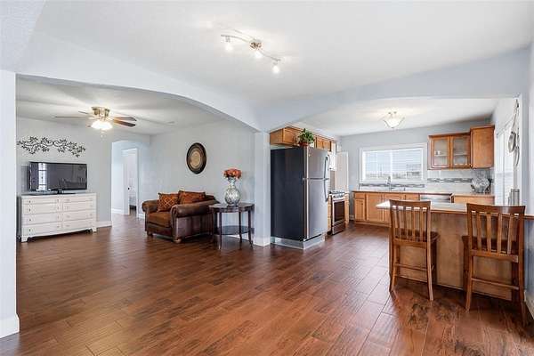 Est $1,867/moCharming country home sitting on 2 beautiful acres, offering the perfect blend of comfort and peaceful living. This 3-bedroom, 2-bath home features warm wood floors and an open-concept layout that creates a welcoming space for everyday living and family gatherings. The kitchen includes a spacious pantry perfect for storing large cookware and entertaining essentials. Enjoy relaxing mornings or evenings on the covered front porch overlooking wide open land, ideal for those seeking privacy and room to breathe while still being close to town. A wonderful place to create lasting family memories.