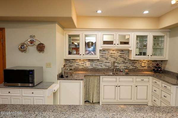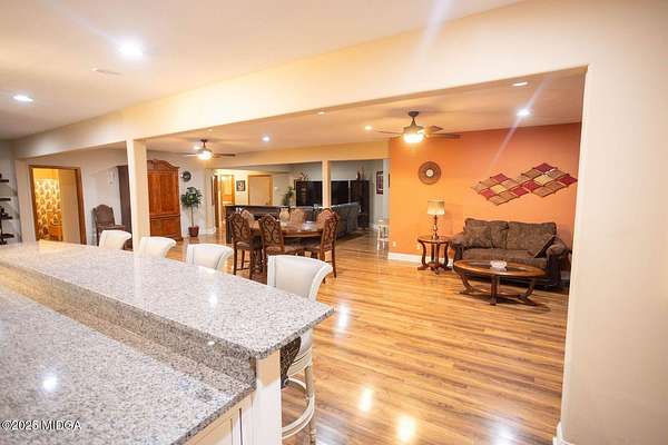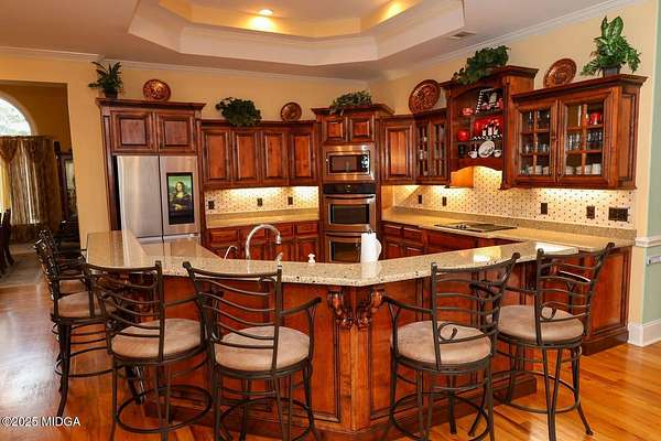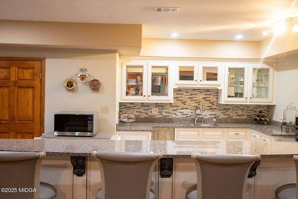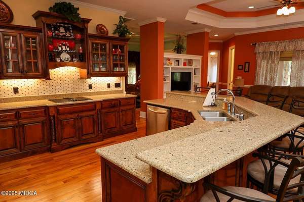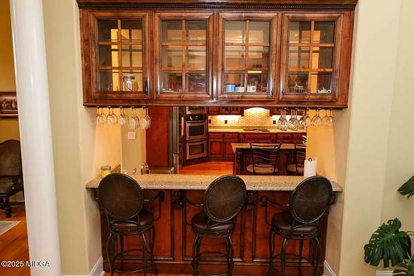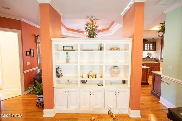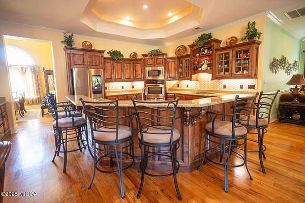 - Bar, Bidet, Bookcases, Built-In Features, Ceiling Fan(s), Chandelier, Crown Molding, Double Vanity, Entrance Foyer, Granite Counters, High Ceilings, His and Hers Closets, In-Law Floorplan, Kitchen Island, Open Floorplan, Pantry, Parlor, Recessed Lighting, Soaking Tub, Sound System, Tray Ceiling(s), Wet Bar
