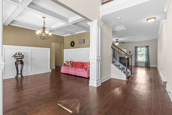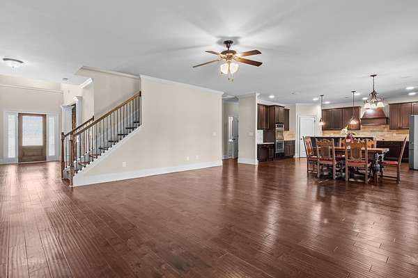 Welcome to this Beautiful 5BR, 4 1/2 bath Columbia County home on 1/2 acre lot that offers a Rocking Chair front porch, spacious 2 story foyer, wood floors, formal dining room with coffered ceiling, wood floors and triple windows. Office/flex room, Huge Open Great room with electric fireplace and marble hearth, Huge kitchen with island overlooking the main area, upgraded appliances, walk-in pantry, double ovens, built-in desk. 1 of 2 owners bedrooms on 1st floor w/lg tile bath double sinks and walk in closet. Palatial owners main bedroom on 2nd floor which is large enough for sitting room or future library of your dreams, 4 picturesque windows with great private of rear yard. Owners bath has soaking tub, separate walk-in shower, double sinks, tile floor, unbelievable huge double walk-in closets,, Huge Audio/TV room perfect for almost everything. Audio wiring in each room. 3 more bedrooms upstairs, 1 with private full bath and walk-in closet, 2 other bedroom with jack and jill bathrooms and large closets. Washer/Dryer stays. Fully fenced rear yard, sprinkler system, covered rear patio with speakers overlooking gorgeous private backyard with wildlife views. All this and more located on quiet cul-de-sac. New rook, french drain, extra gutter in 2024. This home is in immaculate condition. Must have appointment