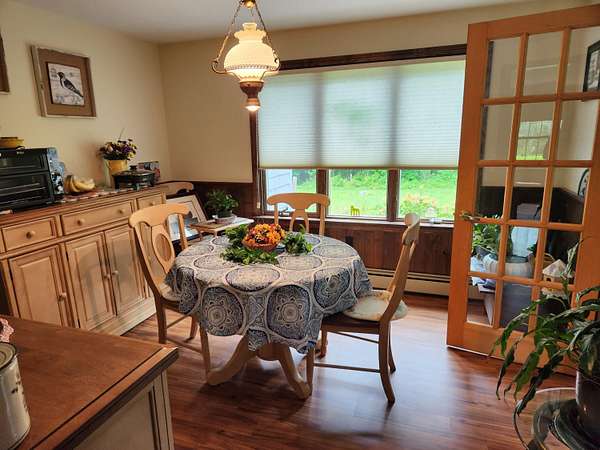 Well maintained quality built 3 BR Cape on 7.2 acres. Attached 2 car garage with storage above. Paved drive. Well landscaped, level lot with beautiful stonewalls. Kitchen with corian countertop, stainless steel appliances and large pantry. Dining room, Spacious Living Room with hardwood floor, large sunroom with gas stove, Half Bath and TV room with brick hearth and gas stove complete the first floor. Upstairs are 2 spacious Bedrooms and a full bath with new walk in shower. Finished room in basement. Private backyard with screen porch and deck. 30x40 detached garage. 2 Heat pumps. On demand generator. Great location just minutes from Damariscotta Lake State Park. Easy commute to Damariscotta, Augusta or Rockland. Move in and do absolutely nothing but enjoy your new home! Email orffrealty@gmail.com or call 207-549-7121