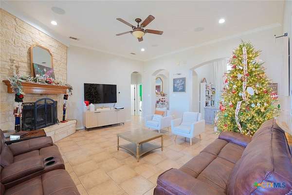 Sun-filled 4-bedroom, 3-full-bath, 2 car garage home features space, comfort, and functionality. Inviting foyer is filled with natural light and opens to a spacious living room with a stunning rock wall fireplace. The formal dining room flows seamlessly into a large, well-appointed kitchen boasting ample counter space, a massive center island, stainless steel appliances, and plenty of natural light. The spacious owner's suite includes private access to the back patio and an owner's bath with a large walk-in shower and relaxing garden tub. Two additional bedrooms share a convenient Jack-and-Jill bathroom. Enjoy the outdoors with an in-ground pool, a chicken coop, and a storage building on a fully fenced yard. Recent updates include; upgraded insulation in the attic and above the garage, now rated R49, improving energy efficiency and comfort. Roof replaced in 2024 and Surround system added. Schedule your showing today!