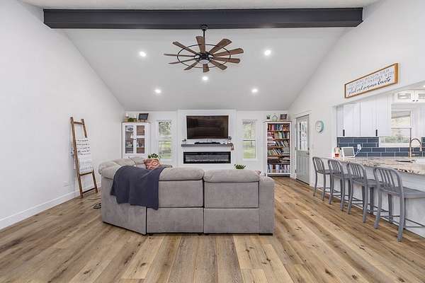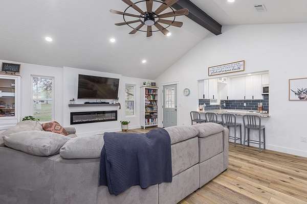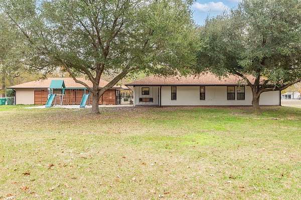 This modern, brick, single-level home is a true homesteader's dream! Fully remodeled in 2024, it offers peace of mind with new windows, HVAC, well pump, updated electrical, & more—Enjoy low-maintenance living for many years to come. Inside, enjoy cathedral ceilings, a fireplace, & custom Santa Fe hand-textured walls. The spacious kitchen features abundant counter space, a breakfast bar, multiple pantries, plus upgrades like a pot filler & pop-up outlets. The 4th bedroom offers flexibility as a second primary suite or bonus room. The fenced pastured acreage features a large barn with power & water, animal corrals, & a chicken coop. A brand-new 25x30 shop with two 10' roll-up doors is perfect for equipment & toys. Located on a quiet no-thru street with a circle drive for easy trailer access & parking. Just 7 minutes to Lake Sam Rayburn boat launches. Refrigerator, commercial washer and dryer , tv and tv mount, security system and starlink equipment are included.