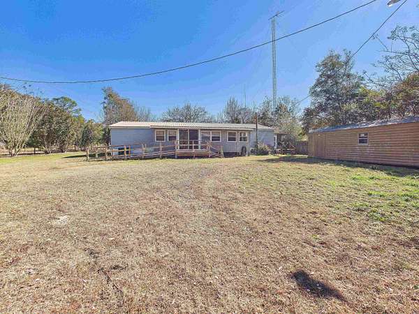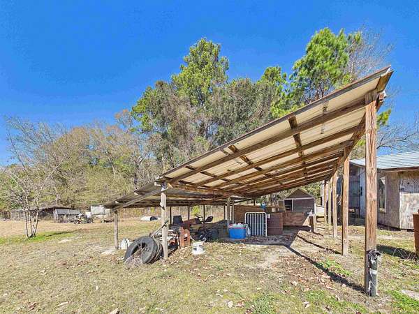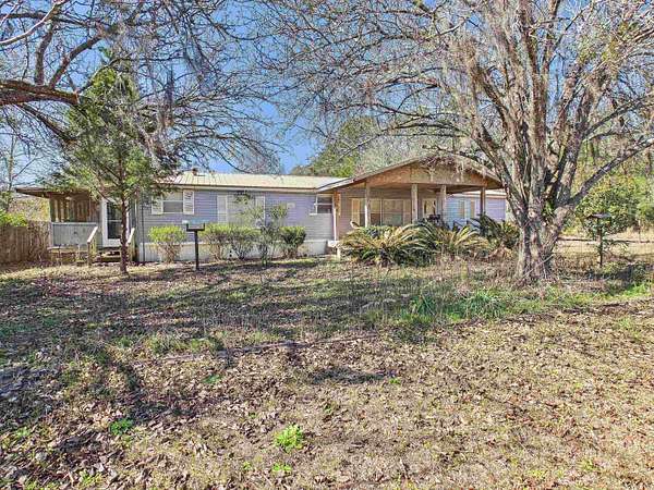 Located in the quiet community of Wacissa, Florida, this 3-bedroom, 2-bathroom mobile home sits on 3.38 acres and offers the perfect blend of country living and everyday convenience. Built in 1994, the home provides 1,680 square feet of indoor living space, plus over 700 square feet of additional outdoor living across three porches. The home features a split floor plan with the primary bedroom and bathroom separated from the two guest bedrooms and shared bath. A spacious, open kitchen includes a bar area and breakfast nook, with ample room for a large dining table-ideal for hosting family and friends. The open living area offers plenty of natural light and a sliding glass door leading to the enclosed back porch, a perfect spot to enjoy morning coffee and peaceful views of the property. Recent updates include new LVP flooring throughout most of the home (excluding two bedrooms). While some updates or personal touches may be desired, the home is in move-in ready condition. An indoor laundry room is included, along with additional laundry hookups located on one of the enclosed porches. Outdoor living truly shines here. The front of the home features a large covered deck overlooking the front yard with mature landscaping and a separately fenced pasture area. Out back, you'll find everything needed to start your own mini-farm, including multiple outbuildings for storage or workshop space, a cook shed, large chicken coops, shelters for goats or other small animals, and a small stocked pond where deer and other wildlife are frequently seen. The property includes two wells-one serving the home and a second located near the pond (in need of repair). Despite the peaceful, secluded feel, the property is conveniently located just 20 minutes south of Monticello and an easy 30-minute commute to Tallahassee. This is a property that truly needs to be seen in person to appreciate everything it has to offer.