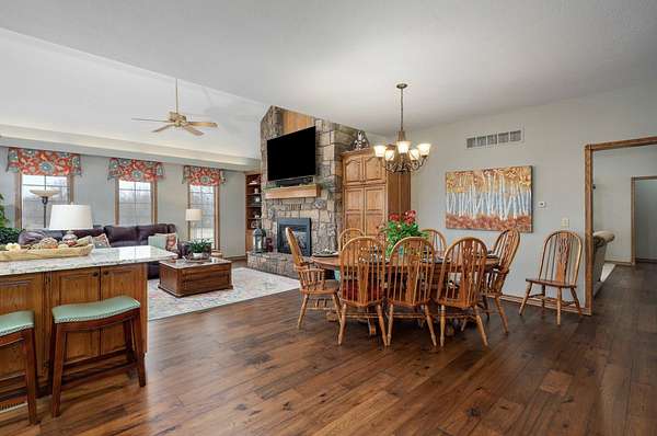 Welcome to Your Dream Home!This stunning 6-bedroom, 5.5-bathroom residence offers the perfect blend of luxury, comfort, and serenity. As you approach the property, a beautiful circular driveway leads you to the grand entrance, setting the tone for this exceptional home.Inside, you'll find a spacious and open layout featuring tall ceilings that enhance the sense of openness and elegance. The large kitchen boasts ample cabinet space, elegant granite countertops, and a cozy living area complete with a fireplace--perfect for relaxing or entertaining. Hardwood floors flow through the kitchen, living, and dining areas, enhancing the beauty and warmth of the space.The home features three fireplaces, large bedrooms, and an office/mudroom area for added convenience. Home also has a generator to allow ease during a power outage. The covered/uncovered deck offers a serene space to enjoy breathtaking views of the pond and surrounding wildlife. With views over a 15-acre m/l pond, this is a true retreat.In addition, an amazing shop is included, perfect for storage and equipment. Equipped with plumbing and electricity, the shop features an upstairs area that could easily be transformed into additional living quarters or a guest suite.The land spans an impressive 75.62 acres m/l, with approximately 47.2 acres m/l enrolled in the Wetlands Reserve Program, offering a peaceful and private oasis for wildlife watching and outdoor enjoyment. This property offers premier duck, deer, and turkey hunting opportunities right in your backyard. There are 4 well-established duck ponds. Deer blinds are already in place and ready for your next hunt, providing convenience and great vantage points. The natural terrain is also ideal for turkey hunting, offering a rich and diverse game population. Whether you're a seasoned hunter or simply enjoy the outdoors, this property delivers the full experience.