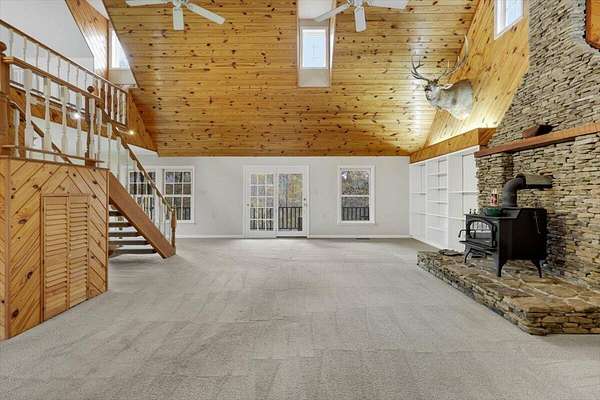 - Built-In Features, Cathedral Ceiling(s), Ceiling Fan(s), Connected Shared Bathroom, Double Closets, Double Vanity, Eat-In Kitchen, En Suite, High Ceilings, High Speed Internet, Kitchen Island, Natural Woodwork, Open Floorplan, Pantry, Separate Shower, Soaking Tub