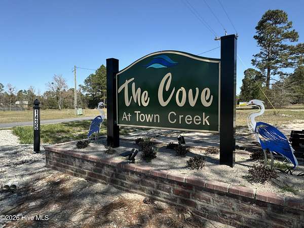 Head S on hwy 17 towards Winnabow. Take Right onto Green Hill Rd NE, and The Cove at Town Creek will be on your Left. The Lot #1 will be the 1st lot on your Right.