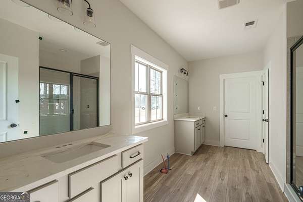 Introducing The Sutton Farm plan, one of the newest additions to the sought-after Hawks Crossing community! This new construction modern farmhouse offers 4 bedrooms and 3 full baths, nestled on a beautiful private 4.89-acre lot in Social Circle. The spacious open concept ranch-style layout features three bedrooms and two full baths on the main level, including a luxurious master suite. Upstairs, you'll find a private fourth bedroom and full bath, perfect for guests or teens. Designed for today's lifestyle, the open concept living space includes a large great room, dining area, and a dream kitchen with quartz countertops, stainless steel appliances, a vented custom hood, oversized island, and pantry. Beautiful wood-look laminate flooring, designer finishes, make this home as functional as it is stylish. The primary suite boasts a walk-in shower, double vanity, free standing luxury tub and generous walk-in closet. Step outside to relax on your covered rear porch, ideal for morning coffee or evening gatherings. The 3-car garage adds even more convenience and storage. LIMITED-TIME INCENTIVE: Seller is offering $15,000 toward closing costs or a 2/1 rate buy-down with preferred lender! Home is nearly completed and ready to go.