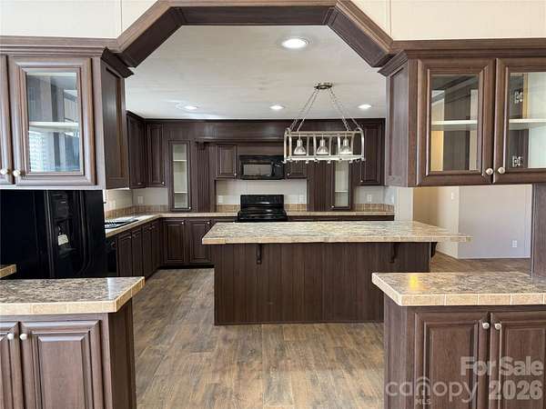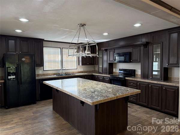 2016 Year Model Approximately 2302 Sq Ft Upscale Manufactured Home. Modern Open Floor Plan, Living Room, Dining Room, Den with Stone Faced Fireplace. Kitchen with Large Work Island, Range, Refrigerator, Dishwasher and Overhead Microwave. Large Laundry Room with Work Island, Counter Top Space and Lots of Cabinets. Primary Bedroom - Bath with Soaker Tub, Dual Sinks Vanity, Linen Storage and Separate Shower. Central Heat and Air, Large Front Deck! Permanent Foundation, Brick Underpinned, Private Well and Septic, 5 Private Acres!