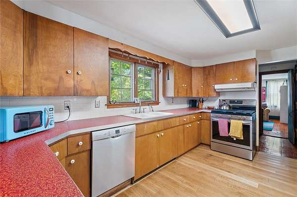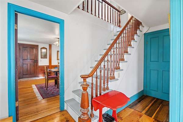 Nestled on a beautiful corner lot walking distance to the Black Diamond Trail, Taughannock Falls State Park and just a short commute to the Village of Trumansburg, this 2 acre parcel offers the perfect amount of space to make all your homesteading dreams come true. Enter the home through an attached 2 car garage into the welcoming entry way that opens up to the back patio overlooking the sprawling green lawn. Inside, the fully equipped kitchen offers plenty of counter and cabinet space with both a breakfast nook and a formal dining creating room to move and hosting gatherings easy. The main level also includes the convenience of a half bath, office or reading space, and a warm, inviting living room with a cozy gas fireplace and plenty of windows to let in natural light. Upstairs, you'll find four comfortable bedrooms and a full bath, notice the entire home is accented by wide plank wood floors throughout. Outside the property features a chicken coop, garden area, and a barn for extra storage, giving you all the space you need for hobbies or homesteading.