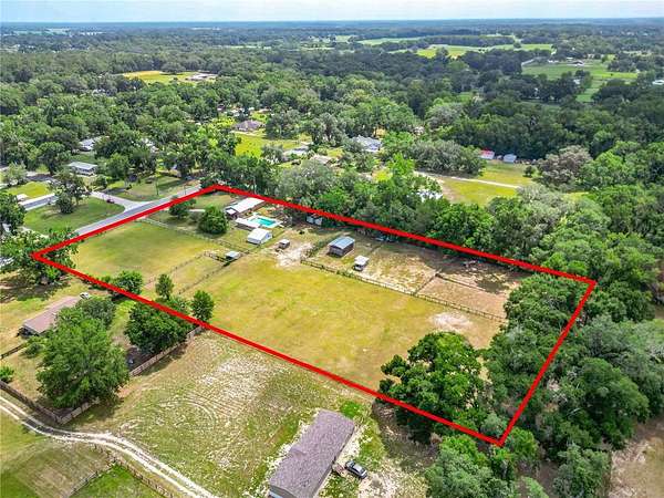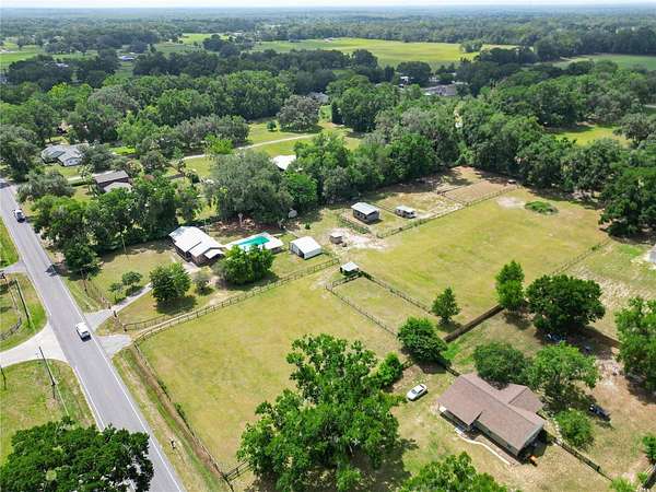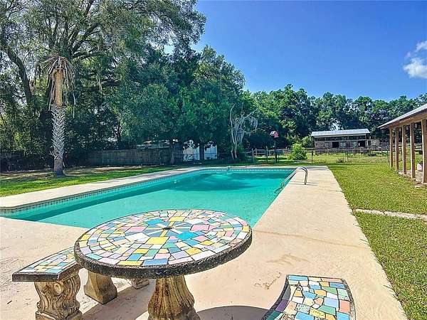 Now offered at $529,900! A 5-acre equestrian property with a 2021 metal roof, completed 4-point inspection, barn, paddocks, pool, and usable land -- all for $529,900. You can't duplicate this package at this price anywhere in Anthony. Perfect for horses, hobby farming, RV living, or buyers wanting space and privacy without HOA restrictions. Major systems are done -- just bring your animals and enjoy the land. Step into the kind of country living folks dream about -- quiet mornings, wide-open land, and a solid, old-Florida home built to last. This 5-acre equestrian retreat in Anthony offers the best of Marion County: usable land, established paddocks, a chain-link fenced backyard, garden space, and two driveways -- one to the home and one directly to the two-stall barn with tack room, wash rack, and RV hookup. Bring your horses, livestock, or small animals -- goats, chickens, and rabbits are already welcome here, making it ideal for a hobby farm or multi-animal setup. The 4-bedroom, 2-bath ranch-style home is sturdy, welcoming, and move-in ready, featuring a 2021 metal roof, well-maintained systems, and a completed 4-point inspection for peace of mind. Inside, you'll find warm wood floors, an inviting enclosed front porch, and a classic side porch with swing -- the perfect spot for morning coffee or a quiet evening breeze. Step out back to your oversized lap pool and covered pavilion, offering a peaceful place to unwind after a long day on the farm. The right side of the property provides ample room to build a larger home if desired, while keeping the existing residence as a guest house, in-law suite, or income-producing rental. Low taxes, no HOA, and close proximity to the World Equestrian Center - Ocala, shopping, and trailheads make this an exceptional opportunity for anyone seeking space, freedom, and country simplicity. Seller is offering a $5,000 closing cost credit -- schedule your private tour today and experience the charm of country living for yourself.