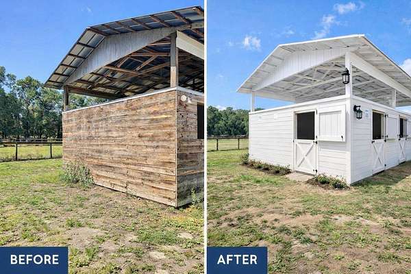 Five beautiful acres. Horse-ready infrastructure. No HOA. Now offered at $499,000. If you've been waiting for an affordable Anthony farm that actually works, this is it. This 5-acre equestrian-ready property is one of the lowest-priced true horse farms in Marion County, offering functionality and usable land that's increasingly hard to find at this price point. The farm is thoughtfully laid out with four established paddocks, cross-fencing, a 2-stall barn with feed room and wash rack, RV hookup, and two separate driveways--designed for real farm use, not just acreage on paper. Select images have been virtually enhanced to illustrate the property's potential and possible cosmetic improvements. The 4-bedroom, 2-bath ranch-style home is solid, warm, and practical, and has passed a 4-point inspection with ease. Interior features include no carpet, wood flooring, solid cabinetry, and an enclosed front porch filled with natural light. Major improvements include a metal roof (2021), whole-home water softener, and regularly maintained systems, providing peace of mind for the next owner. Outdoor living is a highlight, with a private lap-style in-ground pool and a large covered pavilion, ideal for gatherings, quiet evenings, or relaxing after a day with the horses. The pool does require resurfacing--pricing reflects current condition and provides an opportunity for customization. What truly sets this property apart is the land itself--flat, open, usable, and thoughtfully laid out, with ample room to build a larger main residence while keeping the existing home as a guest house, in-law suite, or rental (buyer to verify). Located approximately 20 minutes from the World Equestrian Center, with paved road access, low taxes, and no HOA, this property offers freedom, flexibility, and long-term upside in a market where usable acreage is becoming increasingly rare. If you want real acreage, real usability, and real value--don't miss this opportunity.