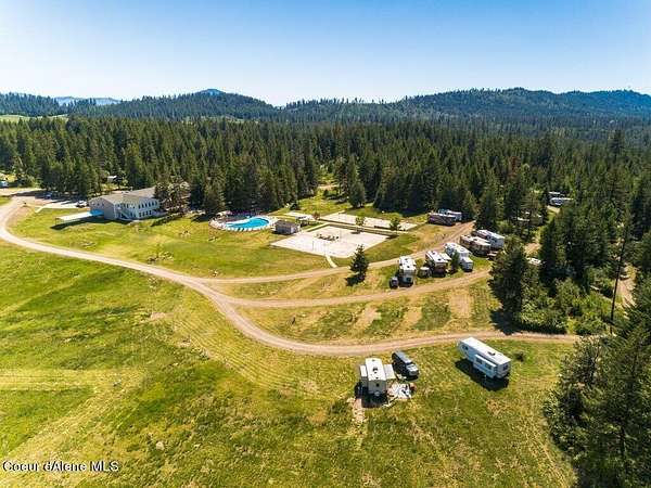 Strategically positioned 40-acre RV resort and lodge in high-demand North Idaho recreation corridor. Includes 12 lodge rooms (one manager suite), 65 RV sites, cabin with plumbing, and infrastructure for 100 tent sites-6 with water. Amenities drive year-round revenue: heated indoor/outdoor pools, sauna, fitness room, game area, tiled shower rooms, laundry, kitchen, offices, and dining space. Outdoor recreation includes volleyball, pickleball, shuffleboard, bocce, and horseshoes. Just 3.9 miles to Lake Coeur d'Alene marina, 15 minutes to Circling Raven Golf Club and casino, 30 minutes to Coeur d'Alene, and 1 hour to Spokane International Airport. Strong growth potential in lodging, camping, and event hosting. This is an asset sale with the purchase price based on the land and improvements with no value given to the business.