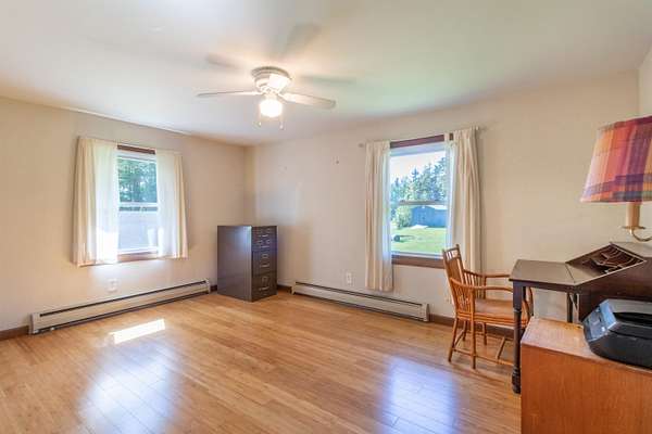 Welcome to 3041 Cross Road in Jay, Vermont -- a warm and inviting single-level home set on a total of 14 acres across two parcels. The residence sits on approximately 4 acres, while the additional 10-acre lot fronts Route 105, offering brook frontage, power on-site, and future potential for building or expansion. Step inside to a bright and spacious great room designed for entertaining, anchored by an updated kitchen featuring a propane range, quartz counters, and plenty of dining space. Both bathrooms have been tastefully refinished, and the convenience of main-level laundry adds to the home's functionality. Interior stairs from the oversized 1 car garage lead to the basement, and between the two spaces, you'll find ample storage space and room for a workshop or hobbies. Outdoors, the setting is lovely, with expansive acreage, a gracious back yard with blueberries, apples and raspberries, large vegetable garden, trails, a serene brook, and a shed and greenhouse. Enjoy the nearby Jay Community Recreational Trails for walking, biking, or skiing. Just minutes away, Jay Peak Resort offers world-class skiing, golf, indoor waterpark fun, and year-round events -- making this property a true four-season retreat. Whether you're seeking a primary residence, weekend escape, or investment opportunity, this property offers flexibility, privacy, and access to everything that makes Jay special.