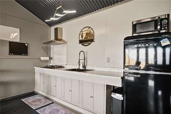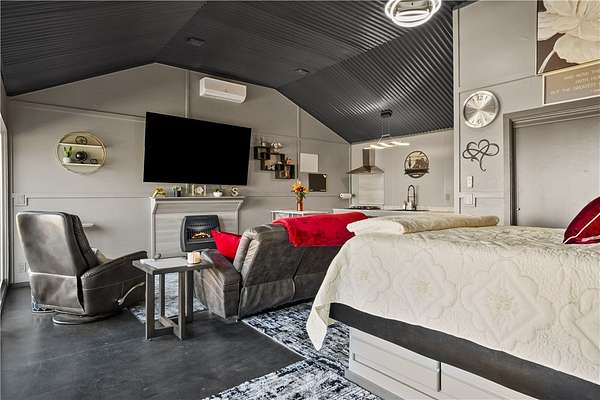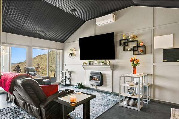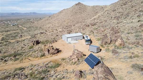 Escape to your own off-grid paradise on over 7 private acres featuring this unique, small metal building home, efficiently laid out as a comfortable studio apartment. This property offers ultimate self-sufficiency and incredibly low utility costs with a robust solar and wind-power system including a battery bank and backup generator, completely eliminating your electric bill. This is complemented by the reliability of city water. Propane powers the range, water heater, and heaters. The home boasts a deck with amazing, panoramic views and an attached garage that includes a huge 12' stainless steel workbench and built-in shelving. The large parcel offers excellent potential to build a second home, and the sellers are including a 1987 Belarus tractor with a front bucket loader and 9' rear blade for easy land maintenance. All this, nestled within a close-knit community where neighbors look out for one another. Some furniture included in the sale as well, the rest can be negotiated