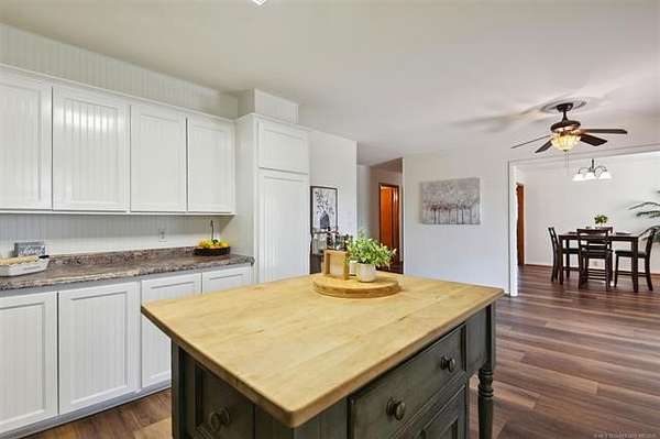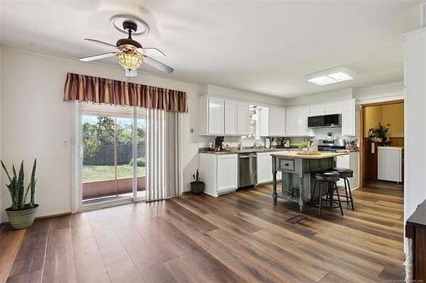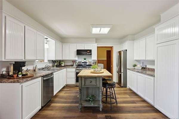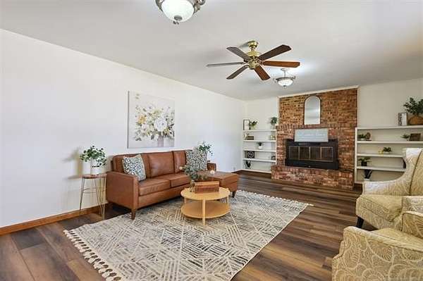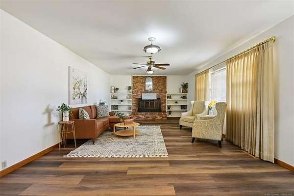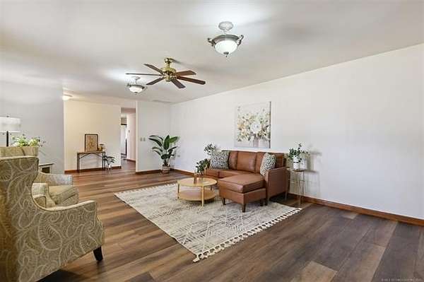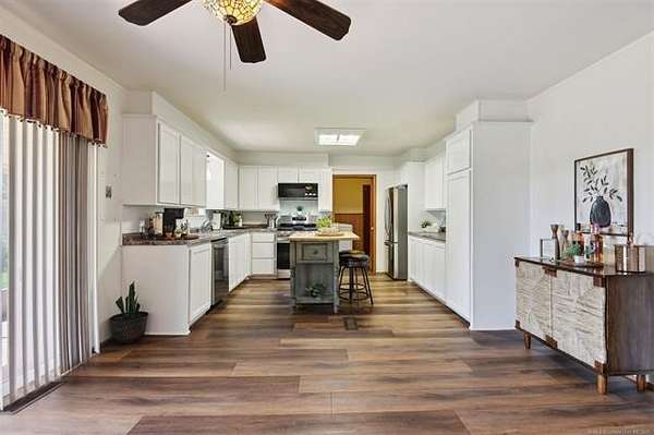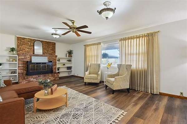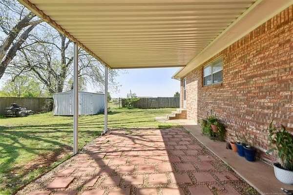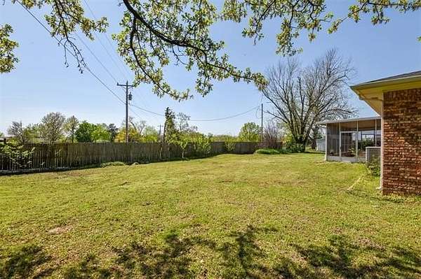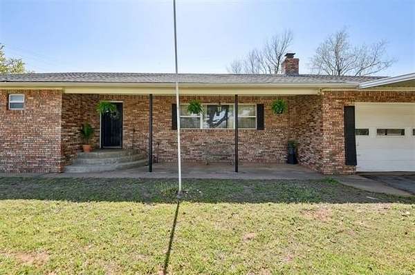 Welcome to a truly unique opportunity in rapidly growing Mannford! This fully bricked home sits on a spacious 3.6-acre corner lot, offering low-maintenance living and a world of potential for residential comfort, home business use, or future commercial development. Inside, the home features new flooring, fresh interior paint, and a cozy wood-burning fireplace with blower--perfect for relaxing evenings. The layout includes a separate formal dining room and an eat-in kitchen with an island, pull-out metal drawers in the cabinets, and all-new appliances with warranties. Enjoy the spacious utility room with ample cabinet storage, making laundry and organization a breeze. The hall bathroom has been upgraded with all-new plumbing, a separate shower, and a step-in bathtub, and the tankless hot water heater ensures comfort and energy efficiency. The primary bedroom has a large private bath and has updated vanity with throwback style. The 2 additional bedrooms have great space and all bedrooms have new carpet. Three separate backyard entry doors offer access to a screened-in porch, a covered patio, and a bonus room that could serve as a game room, 4th bedroom, hobby space, in-law suite, or a private entrance for a home-based business--complete with a connected half bath. With extra-tall garage doors and an extended garage, there's plenty of space for oversized personal/work trucks, trailers, work area, or storage needs. The property has both a well for livestock and rural water for the house, making it ideal for gardening, livestock, or any agricultural use. Located next to city property, this lot presents a prime opportunity for future commercial conversion--a smart investment as Mannford continues to expand westward. Live, grow, and invest--all in one property. Don't miss your chance to own a piece of Mannford's future. Schedule your tour today!