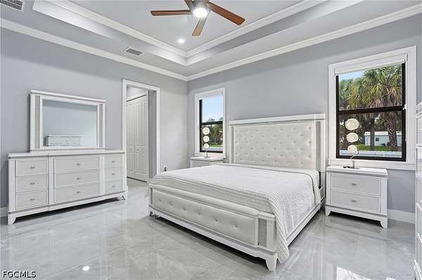 Est $4,313/moGolden Gate Estates home on 2.75 acres featuring a split-bedroom layout, a spacious kitchen with ivory soft-close cabinets and beautiful countertops, plus a den/bonus room. Enjoy high ceilings and recessed lighting throughout. The property offers a large covered patio, garage, and a fully fenced lot with a private entrance. The grounds have been prepared for parking-perfect for an RV, boat, or semi-truck. Impact windows throughout for added security and efficiency.