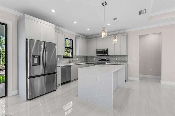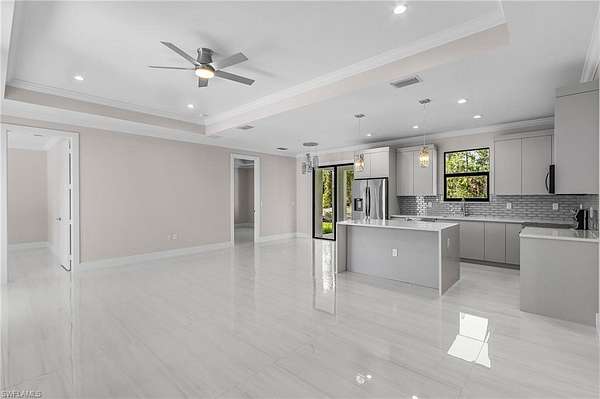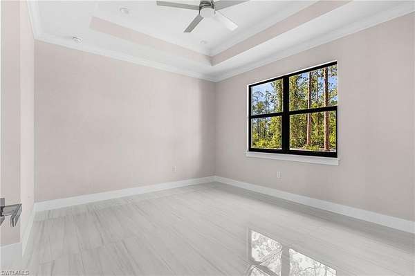 Gorgeous New Construction situated on a ALL UPLANDS, CORNER 2.77 ACRE LOT. Ready to move in. This unique property features 365' OF FRONTAGE, allowing you to have a guest house or a shop next to it with its own entrance point! No restrictions or HOA fees. This inviting home showcases great attention to details and evident high quality built. Featuring 9'4" high ceilings with 10' tall tray ceilings; warm, WOOD LIKE TILE carried out throughout the house creating a clean, seamless, and spacious look; a fresh modern kitchen with all CUSTOM cabinets, quartz countertop, a waterfall island; crown molding on main living area and master bedroom; 6" baseboards throughout; 8-ft doors; and beautiful, modern bathrooms featuring vessel sinks and custom cabinetry. ALL IMPACT RESISTANT WINDOWS AND DOORS. Automated sprinkler system and asphalted driveway. Located in the rapidly growing Golden Gate Estates area making this home the perfect investment for your family! MLS pictures are a representation of house of same model, not actual property. CHECK OUT THE VIDEO TOUR OF A SIMILAR MODEL HOUSE!