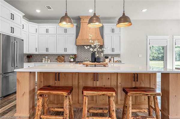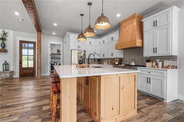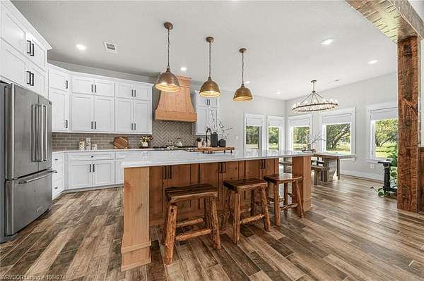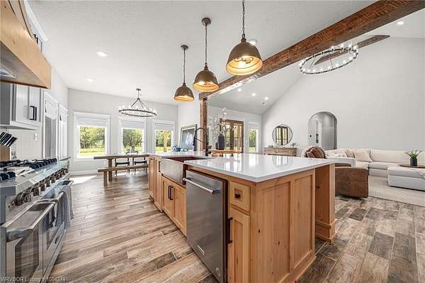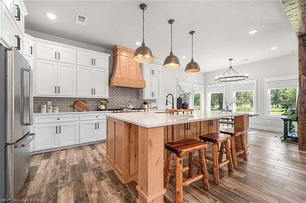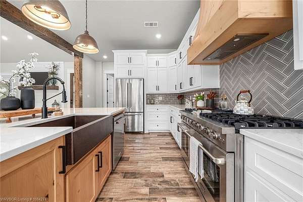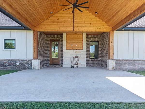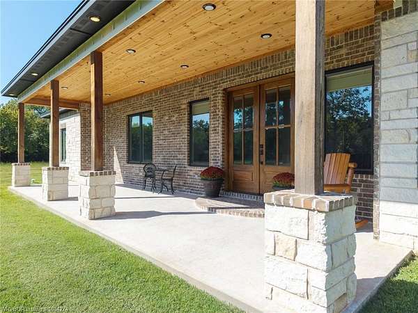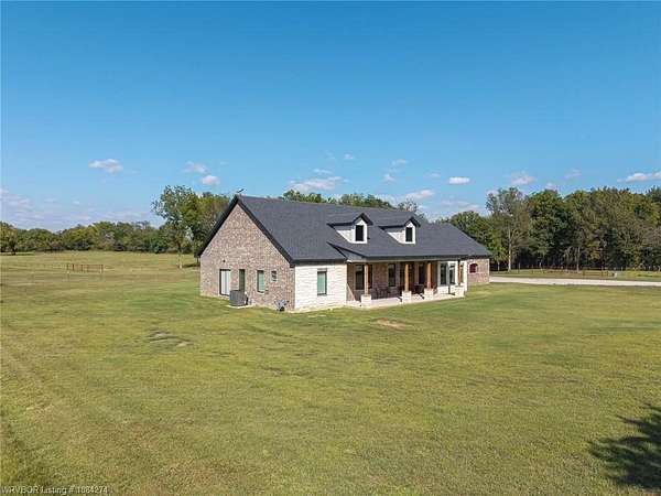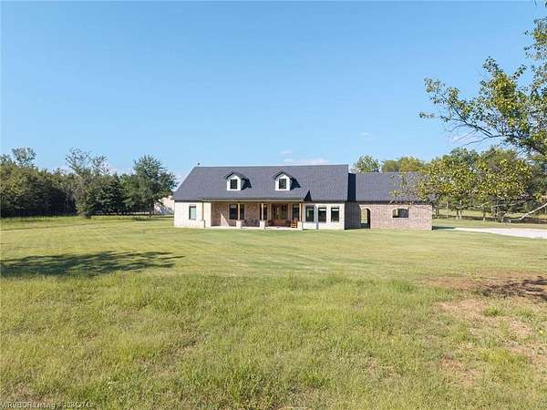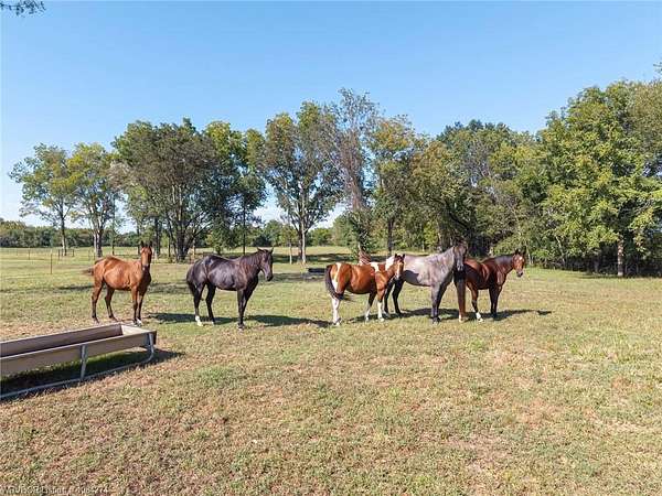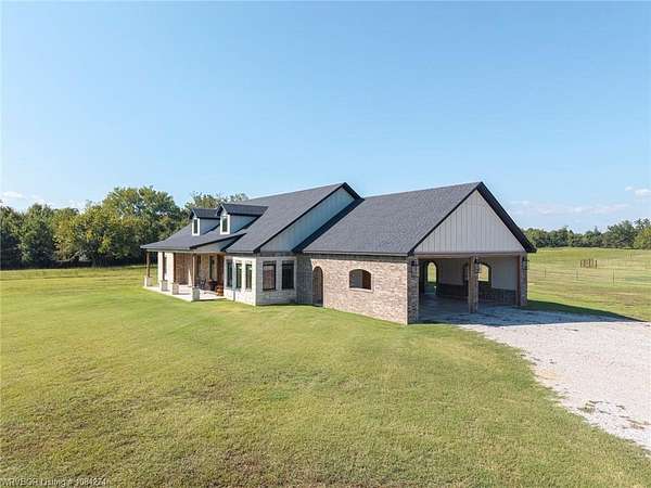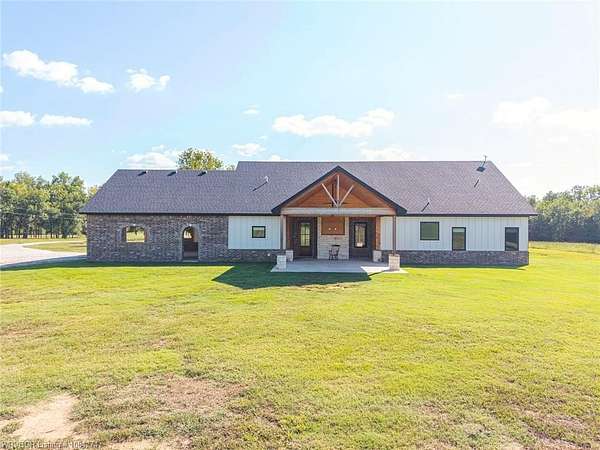 Beautiful 100 ac horse property offering luxury, functionality & prime location for equestrian/ag use. Home features brick & SmartSide board-and-batten exterior, oversized 2-car carport, & 30*60 storage w/tack & dry storage. Inside: 2,500 SF, tall ceilings, hewn beams, lg windows for natural light. Gourmet kitchen boasts 48, gas range w/6 burners, griddle & dbl oven. Hand-beaten copper sinks throughout. 2 BRs w/ensuite baths & WICs plus a lg office for work or flex space. Gas tankless hot water heater for efficiency. Land is fully cross-fenced, set up for horses, w/excellent pasture, riding areas & great hunting. Less than 2 yrs old, the home is foam-encapsulated for energy efficiency. Property is gated w/iron entry & located just mins from Kerr Lake & the Arkansas River, perfect for outdoor recreation. Great access to equestrian events & sale barns: ~25 min to Sallisaw Rodeo Grounds & barns, ~2 hrs to Tulsa, ~3.5-4 hrs to OKC for major rodeos, livestock auctions, team roping & barrel racing. 100 beautiful acres for expansion, grazing, or future development. Ideal for a working ranch, hunting retreat, or luxury country estate-this property delivers space, quality & location in one exceptional package.
